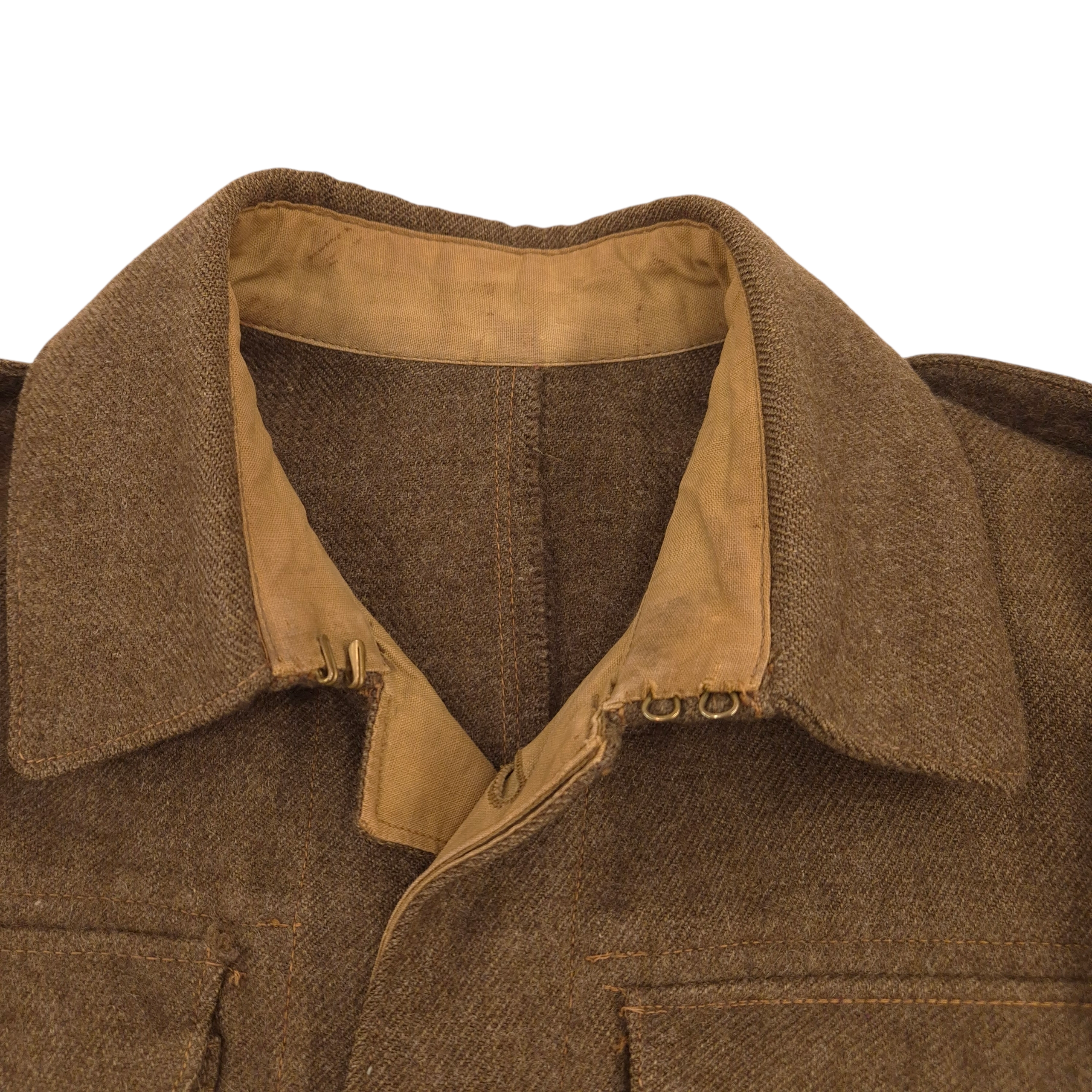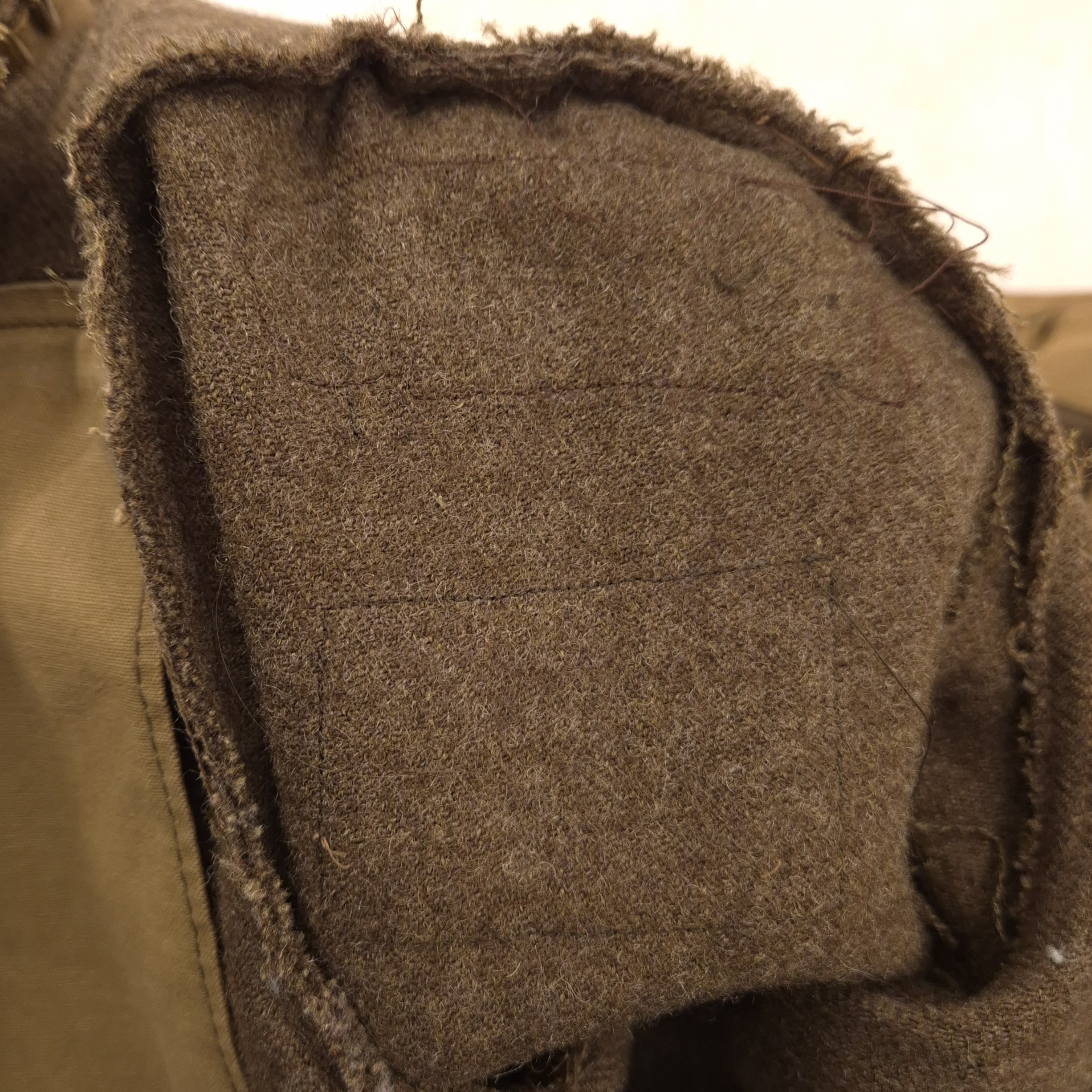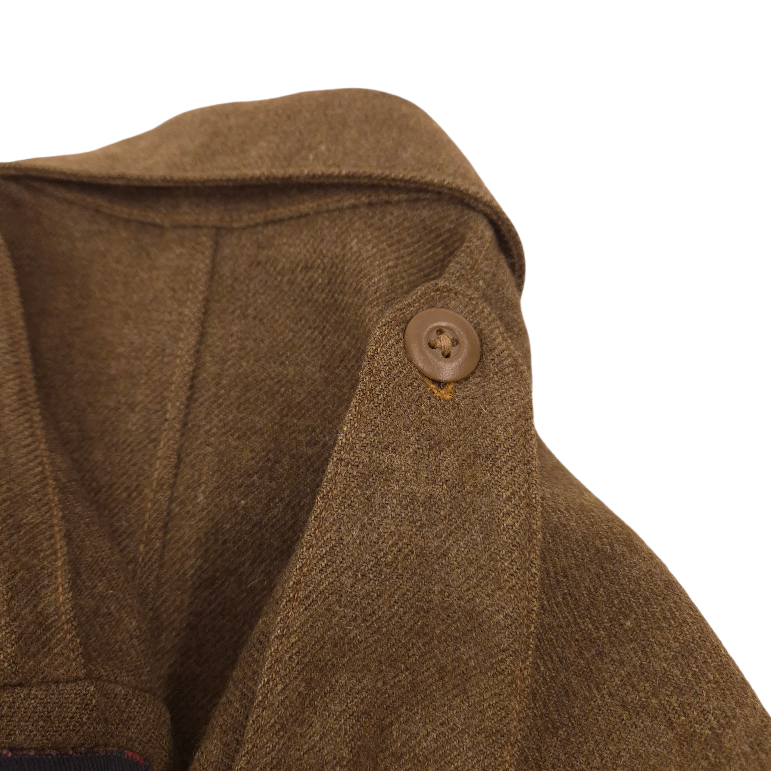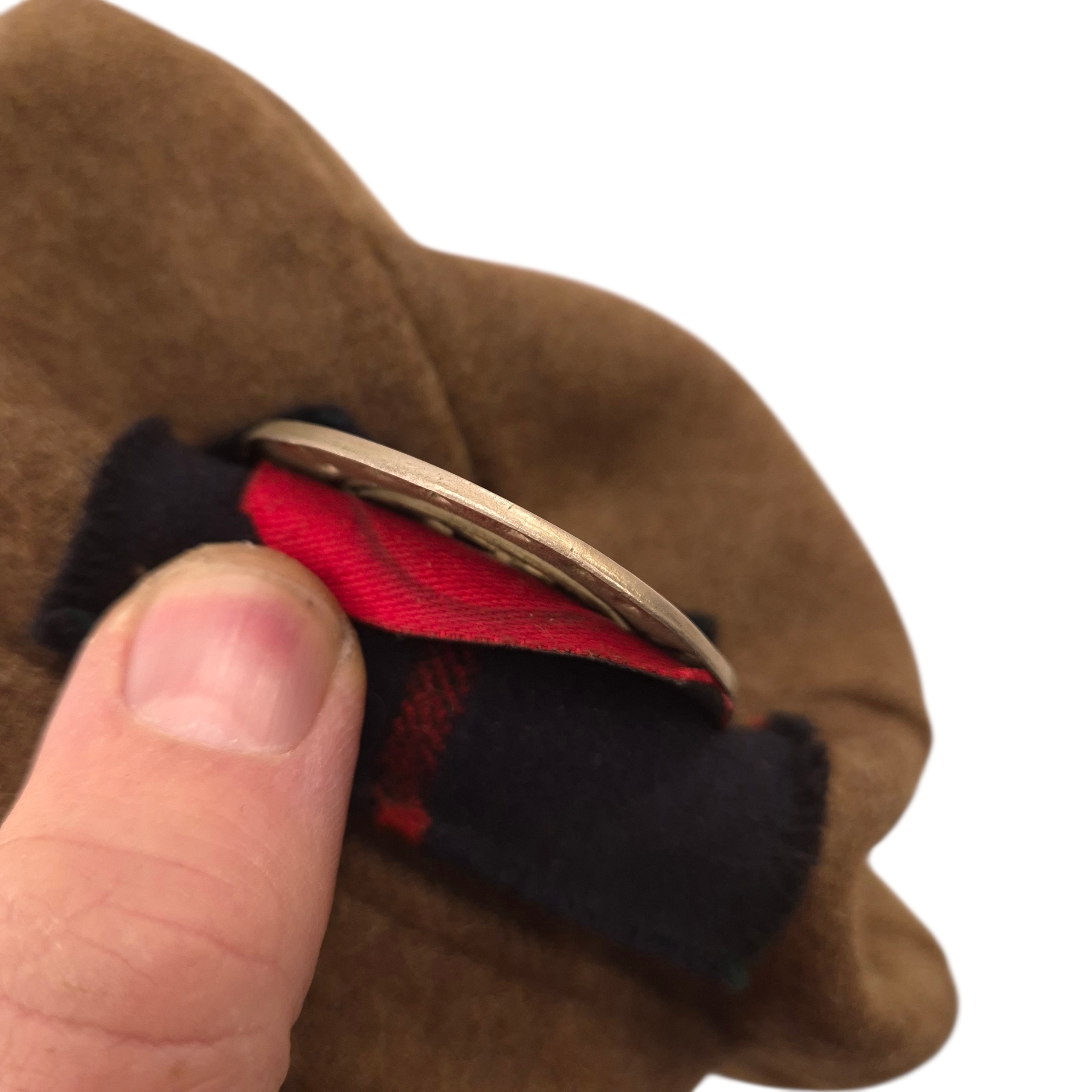 Original WWII 48th Highlanders of Canada Battle Dress jacket and Tam O’ Shanter. An original, period-badged example featuring printed “48th Highlanders of Canada” shoulder titles and printed 1st Canadian Infantry Division formation patches. The battle dress jacket remains in good overall used condition. It is maker-marked and dated 1943, size 9. The Tam O’Shanter is a particularly fine example, British-made, with faded markings. still visible are the following markings; Size 7 1/8, and a WD stamp with the letter M indicating 1944. The cap badge is original to the tam. A notable detail is the printed red patch, cut from a divisional patch, placed behind the cap badge. The tam also retains the correct red toorie for the 48th Highlanders of Canada. The jacket and tam were found together and are therefore offered as a matched set. For detail-oriented collectors, a nice detail; the shoulder titles are different, which is commonly encountered on wartime-used jackets. One example shows a coarser weave. I also took photos of the insignia without artificial light.