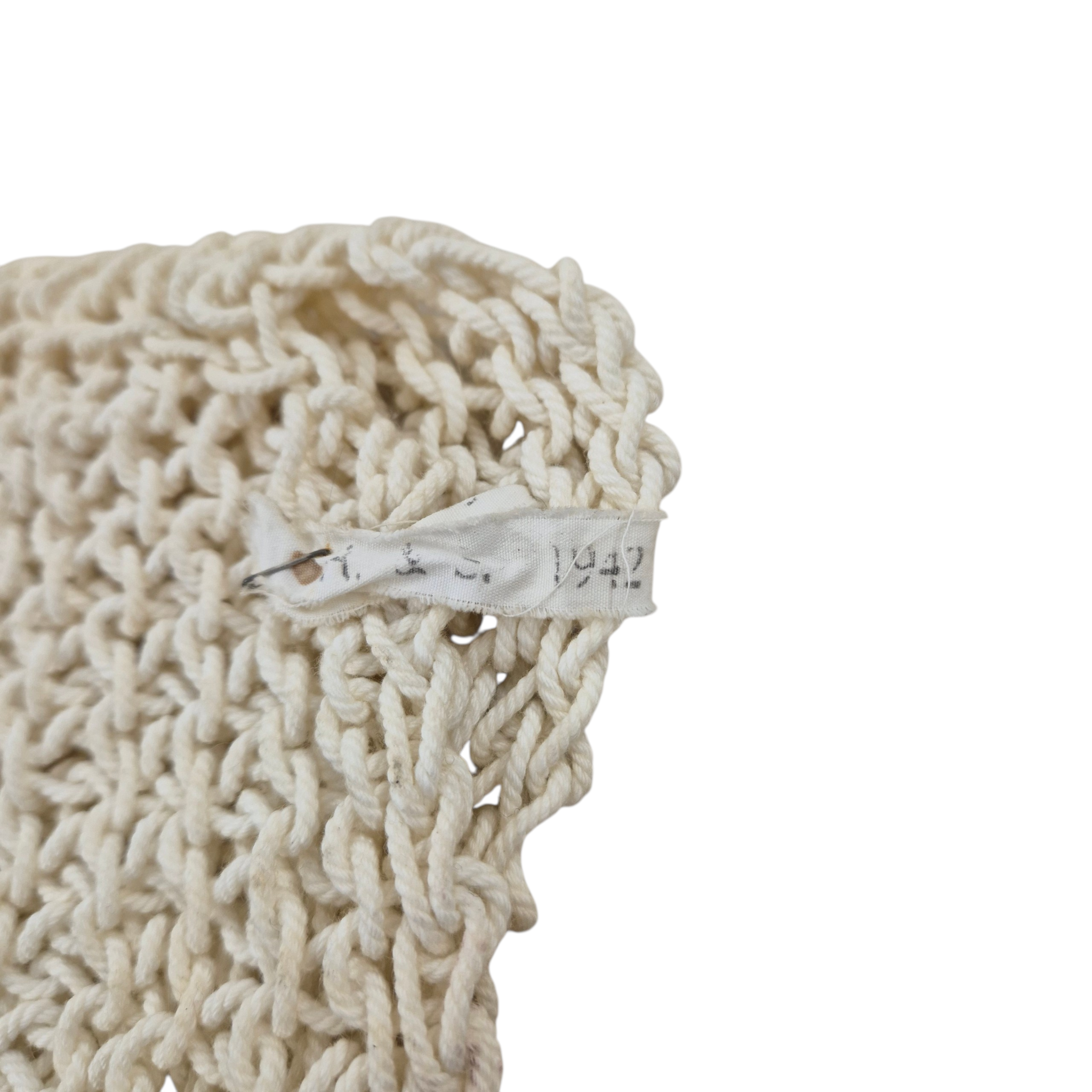 Original WWII British (Airborne) String Vest with makers label. These vests were issued to various units in the Second World War, including the RAF and British Airborne, and are now often called “Airborne string vests.” Known mainly as cold-weather gear. Good condition. Makers label is present: H&S, dated 1942. Good used condition.