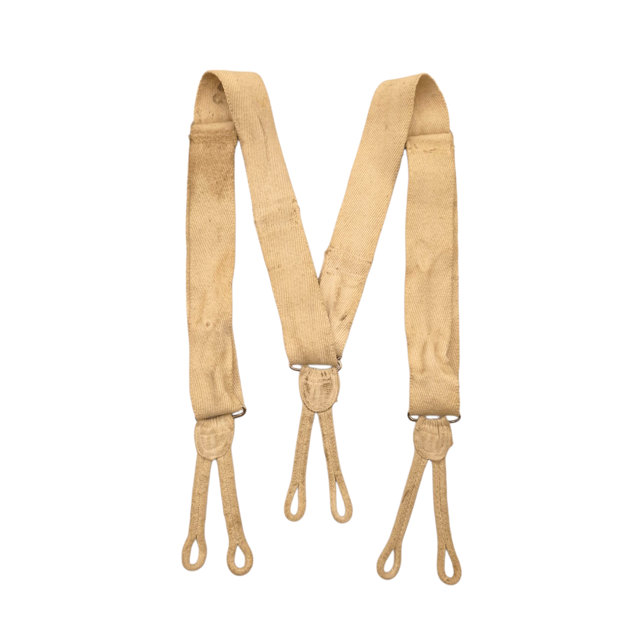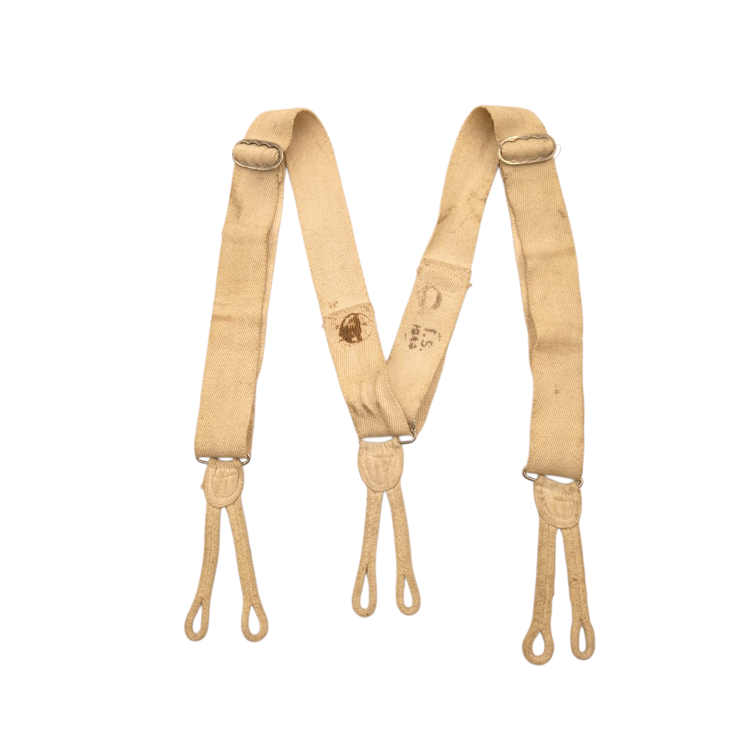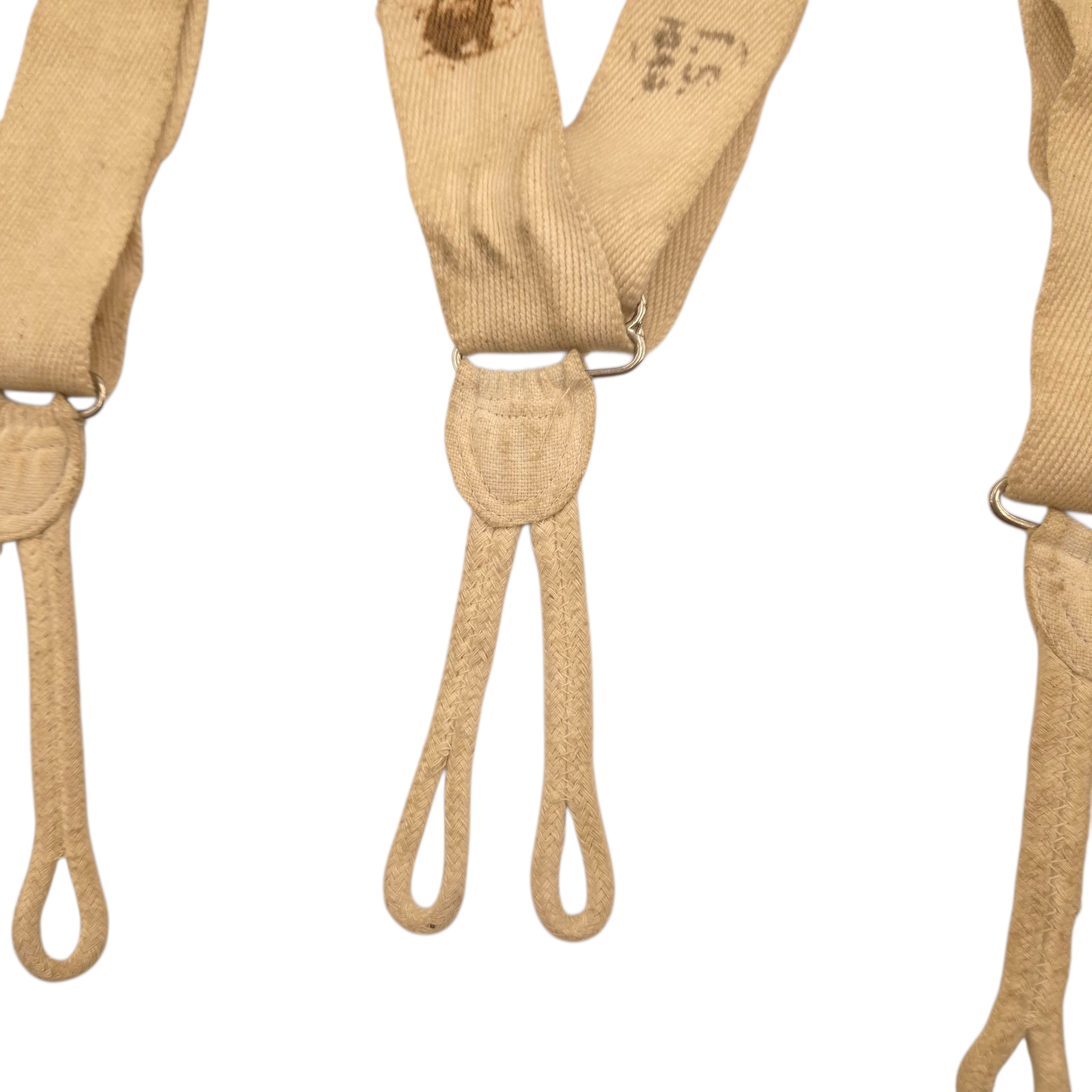 Original WWII British braces for trousers, dated 1944. They may have been manufactured in India.