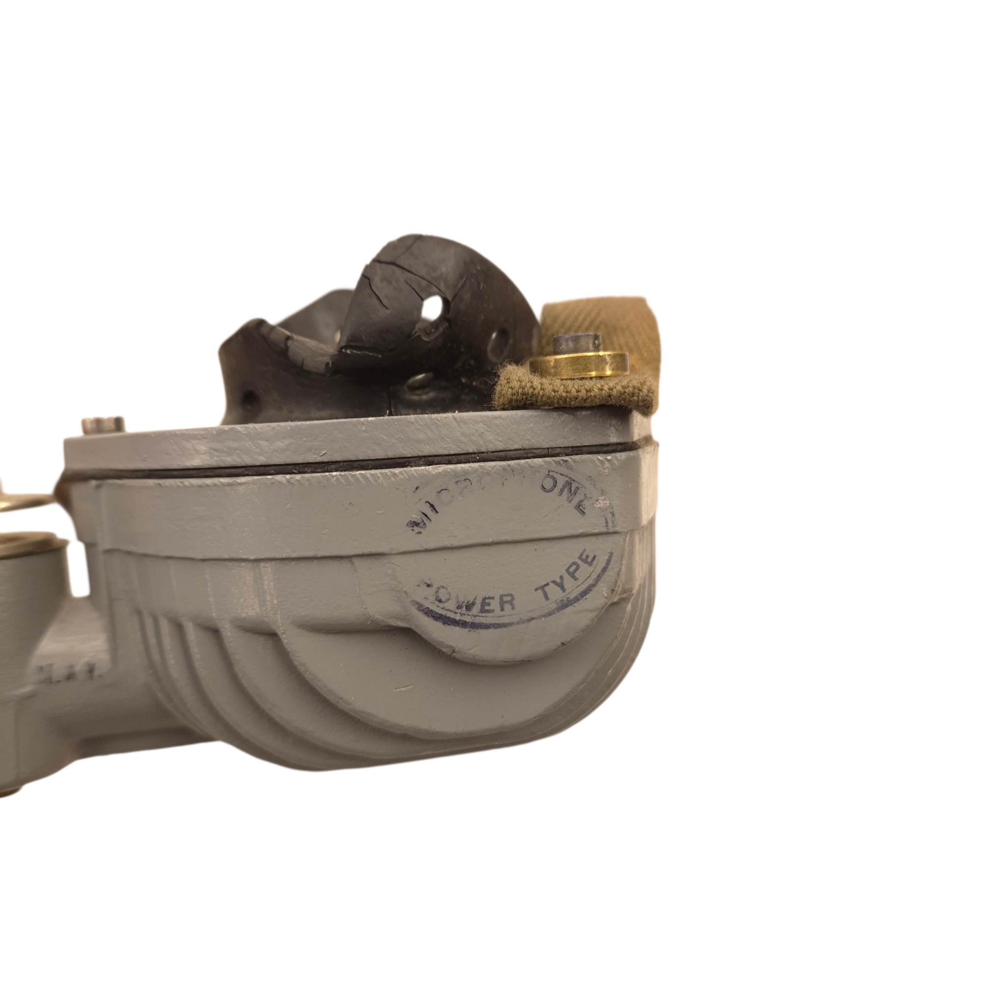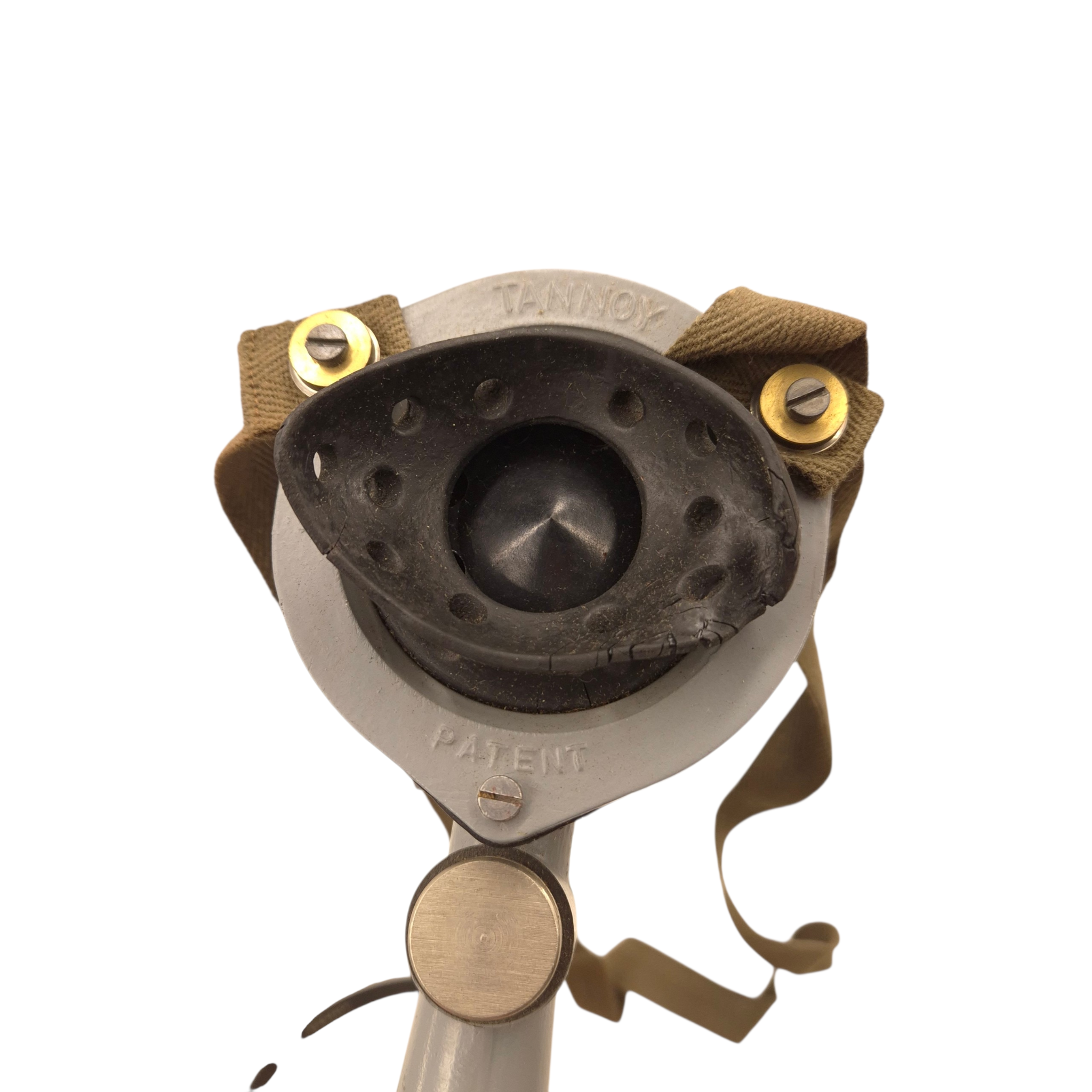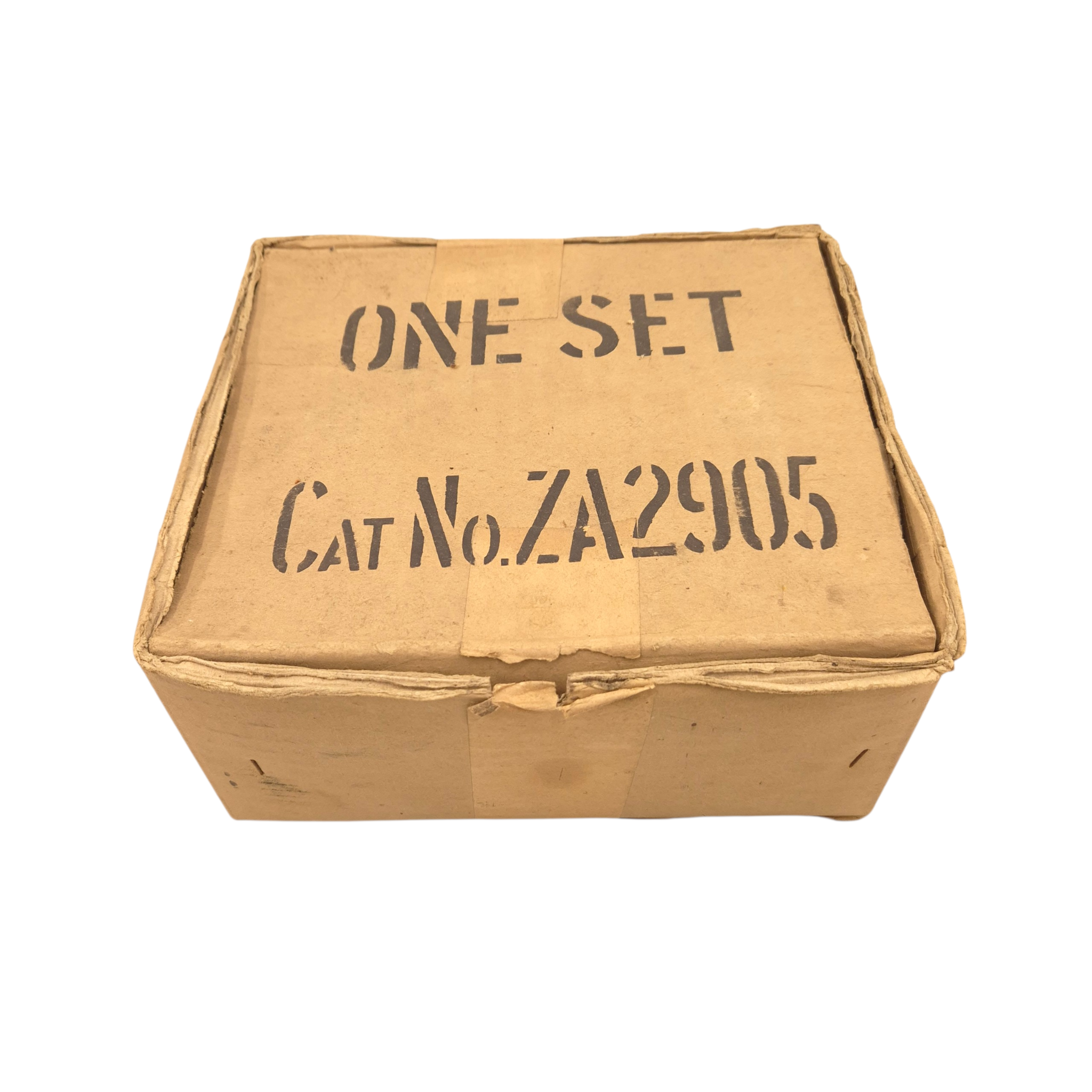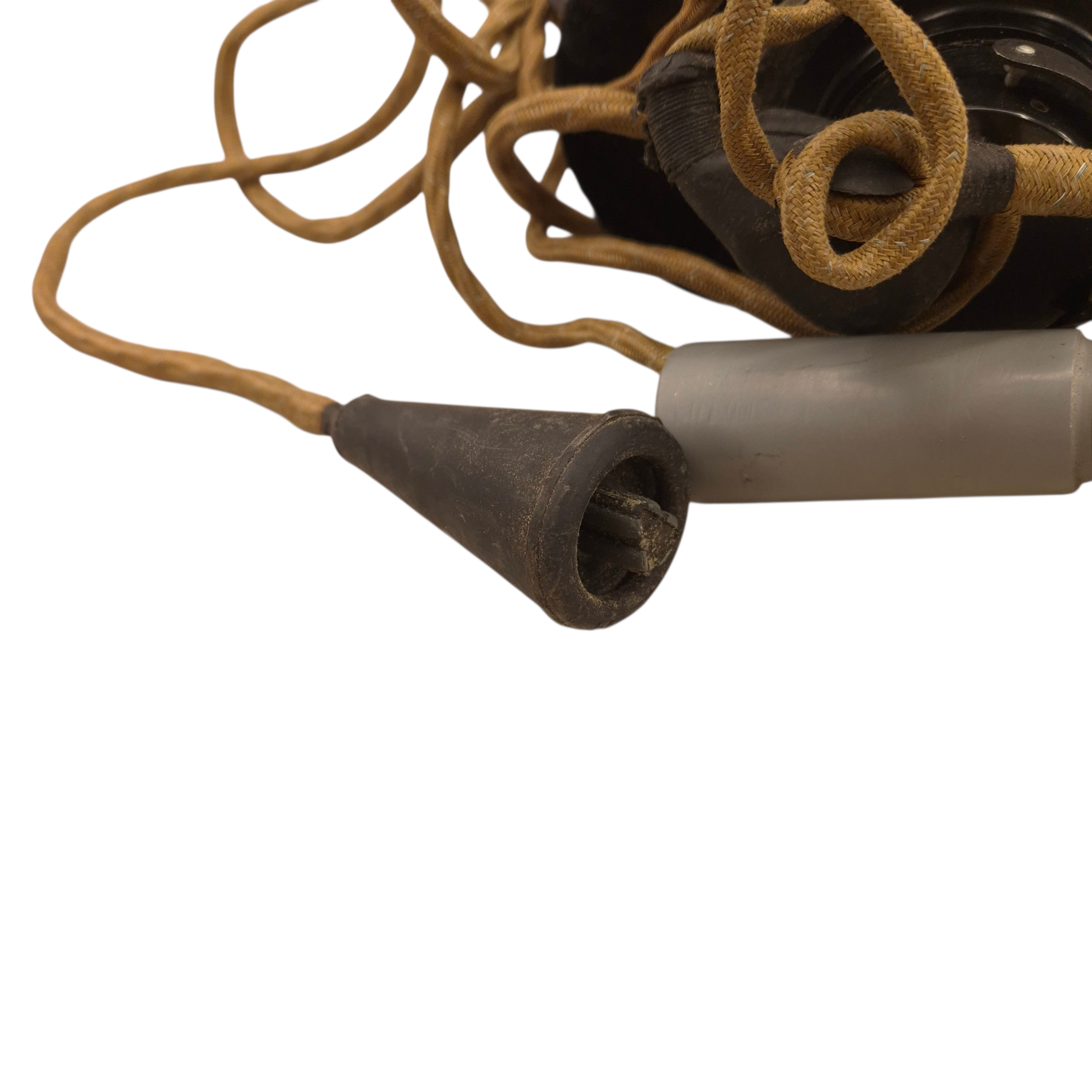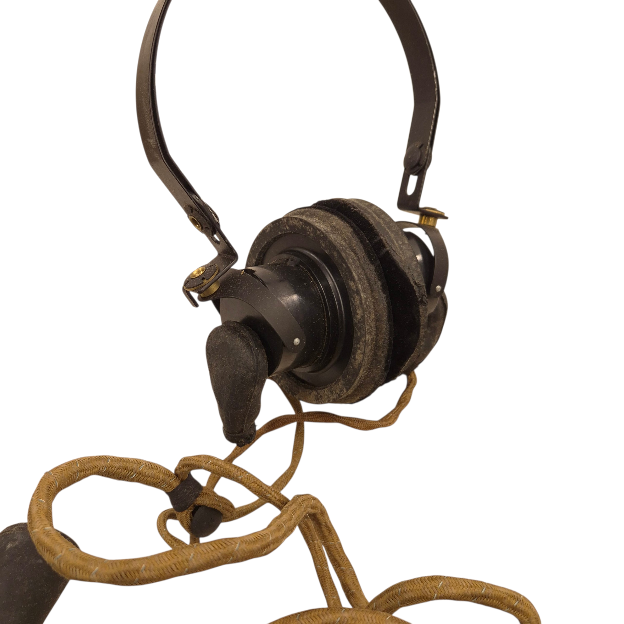 Original WWII British/Canadian headphones and microphone set in its original cardboard box, ZA-2905. The set is in unused condition. The microphone’s rubber mouthpiece is in good condition, somewhat dry as a result of long storage, complete set. Comes with its original plug. Used by tank crews and radio operators. We recently discovered a crate dated 1944 that still contains the headphones.
