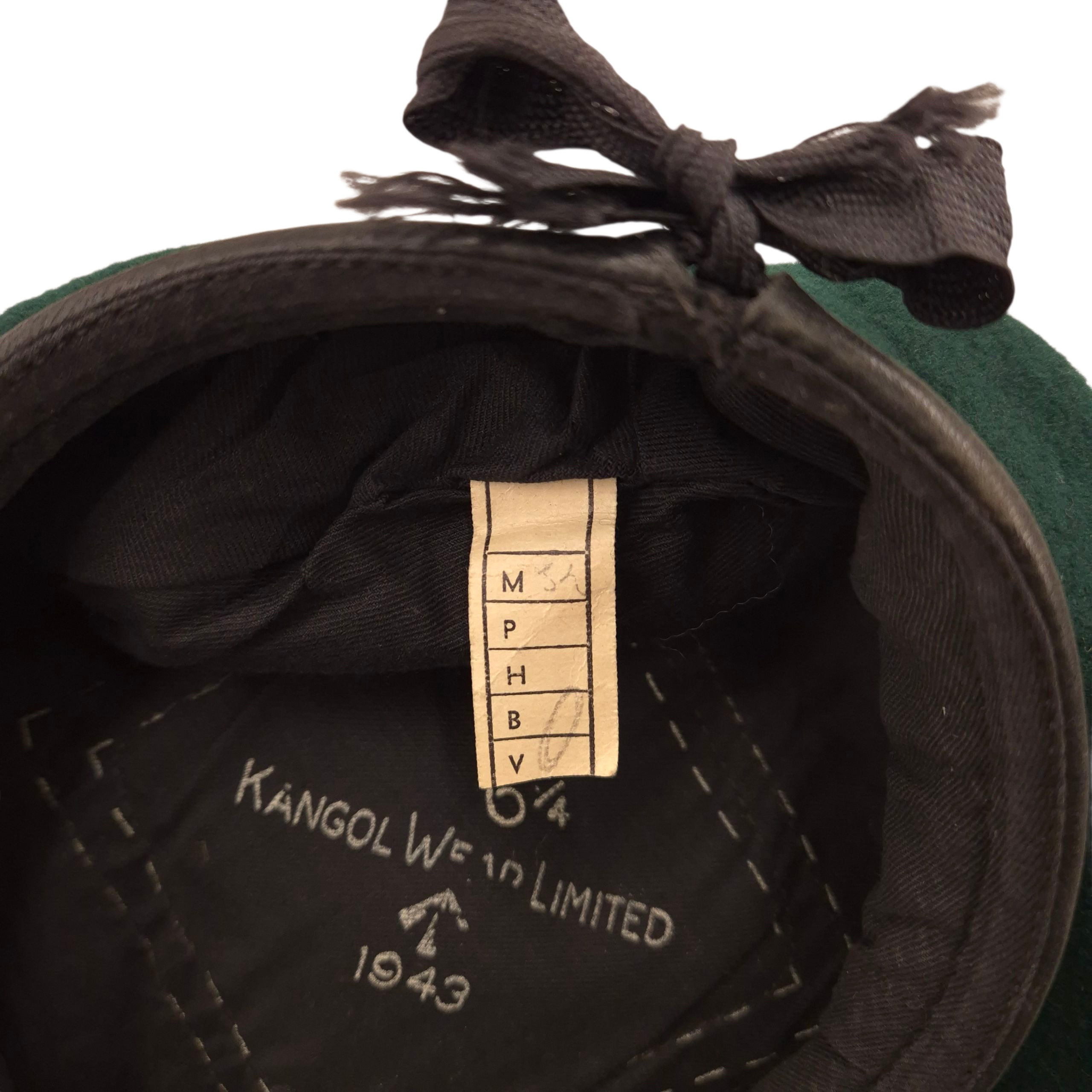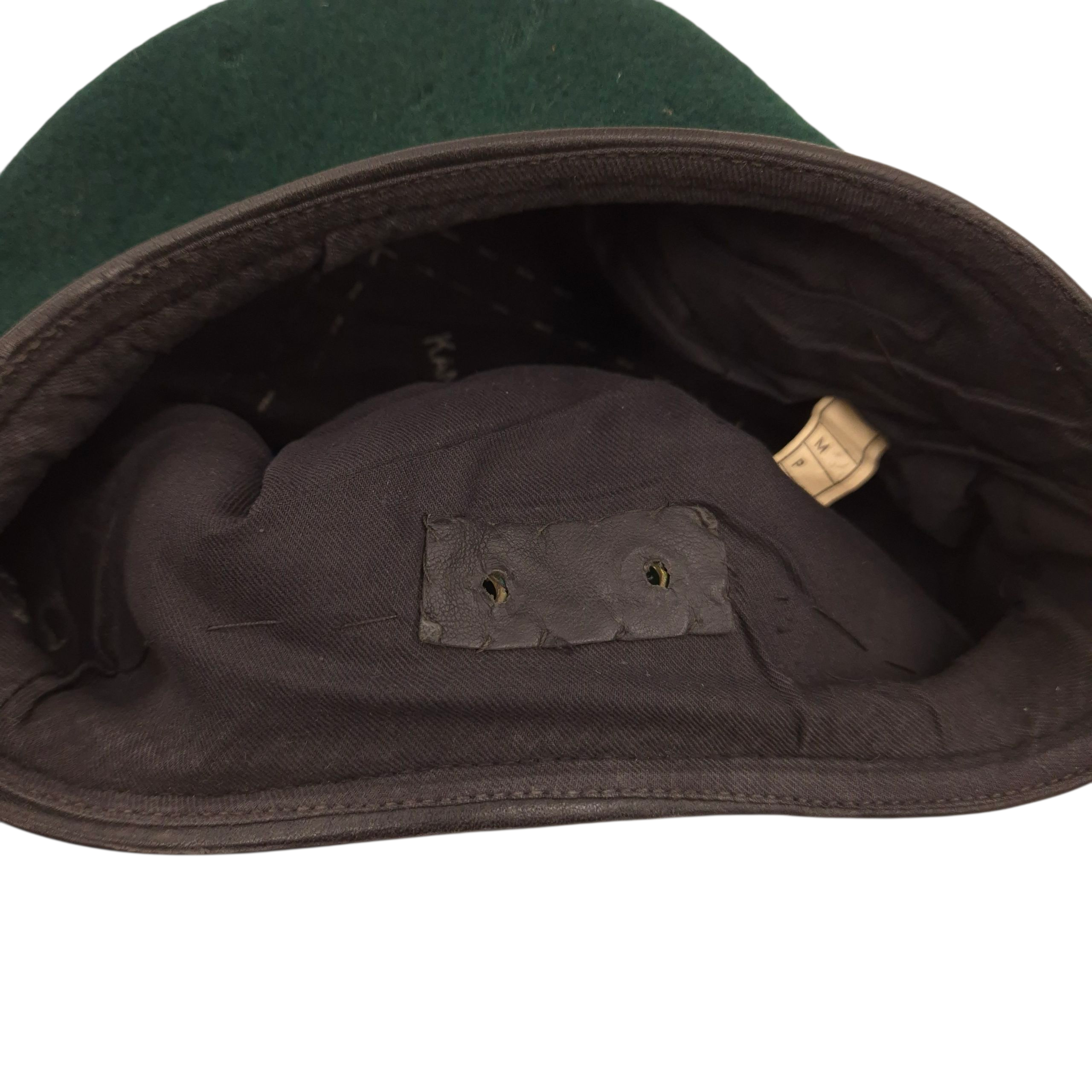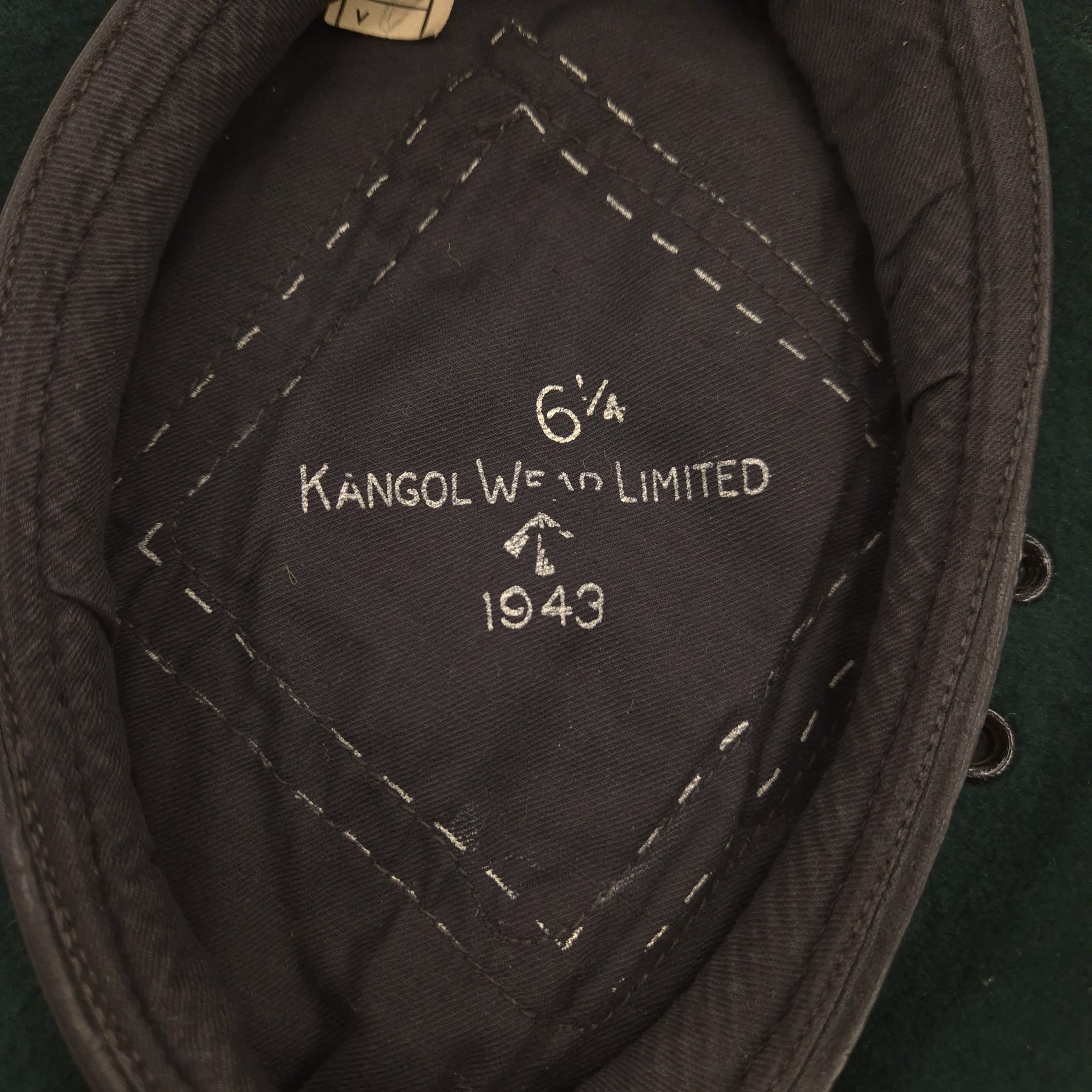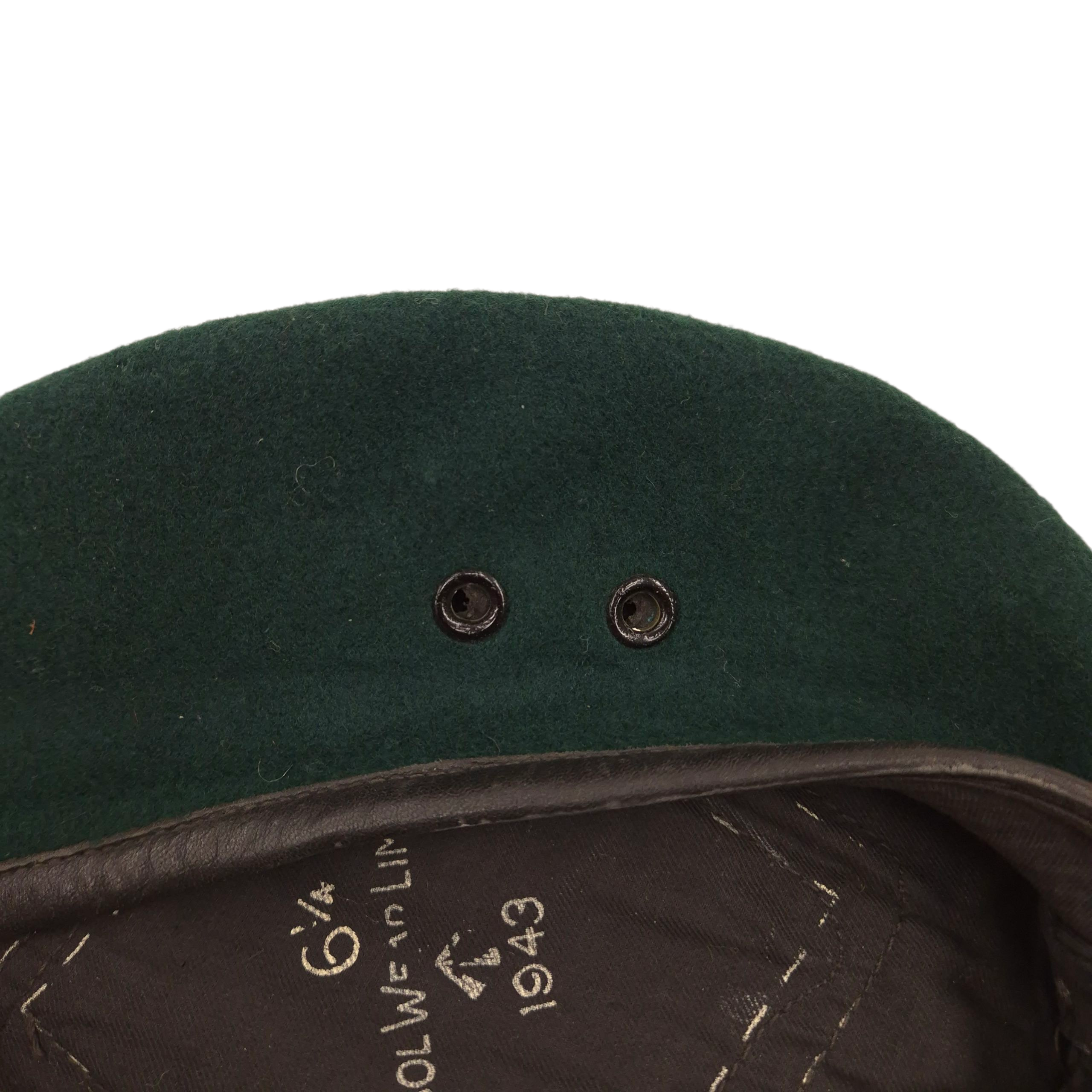 Original WWII British ‘Commando’ Green Beret. A textbook example of the famous and very hard-to-find green Commando beret. This example was manufactured by Kangol Wear Limited, dated 1943, size 6 1/4. It shows light service wear with only some scattered moth tracking and one small hole. The interior bears the War Department stamp with the letter code N, indicating a 1943 issue date. A very nice beret!