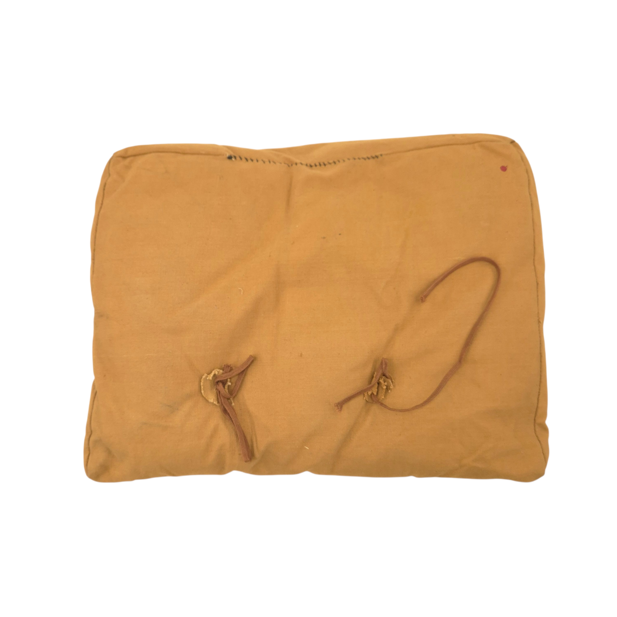 Original WWII British-made cushion, also used with the SOE jumpsuit. Made of strong khaki canvas and padded with horsehair. Maker stamps are not visble. A scarce piece in good condition.