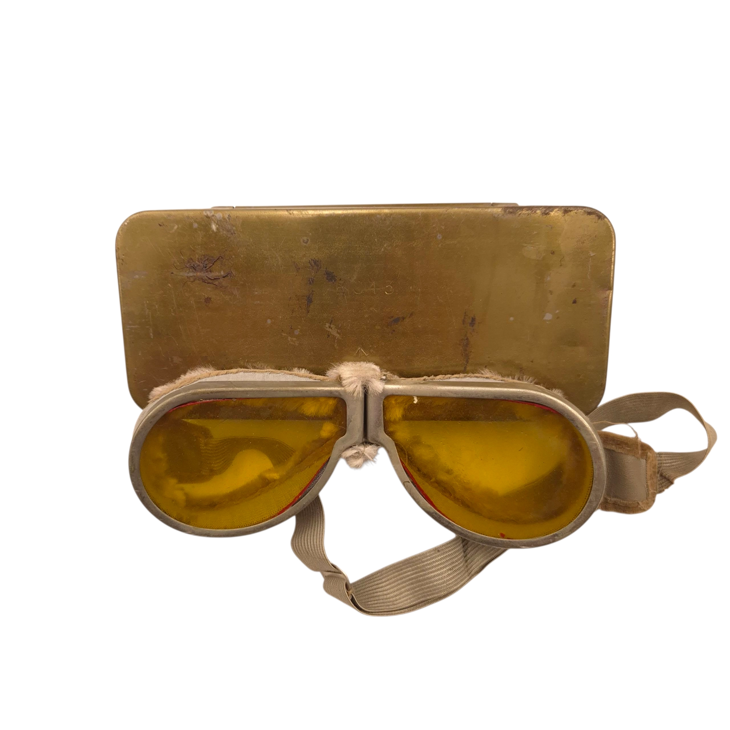 British Dispatch Rider’s Goggles in metal box 1943