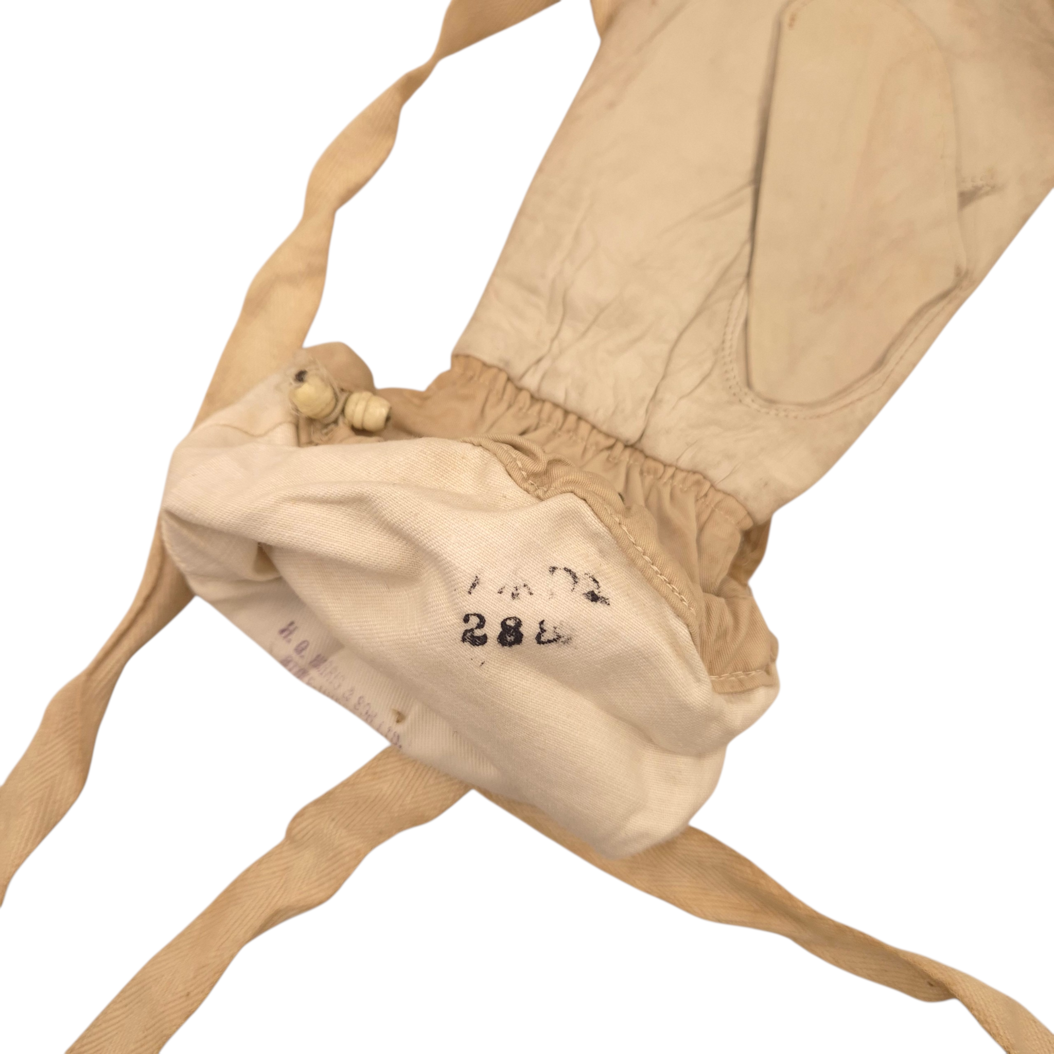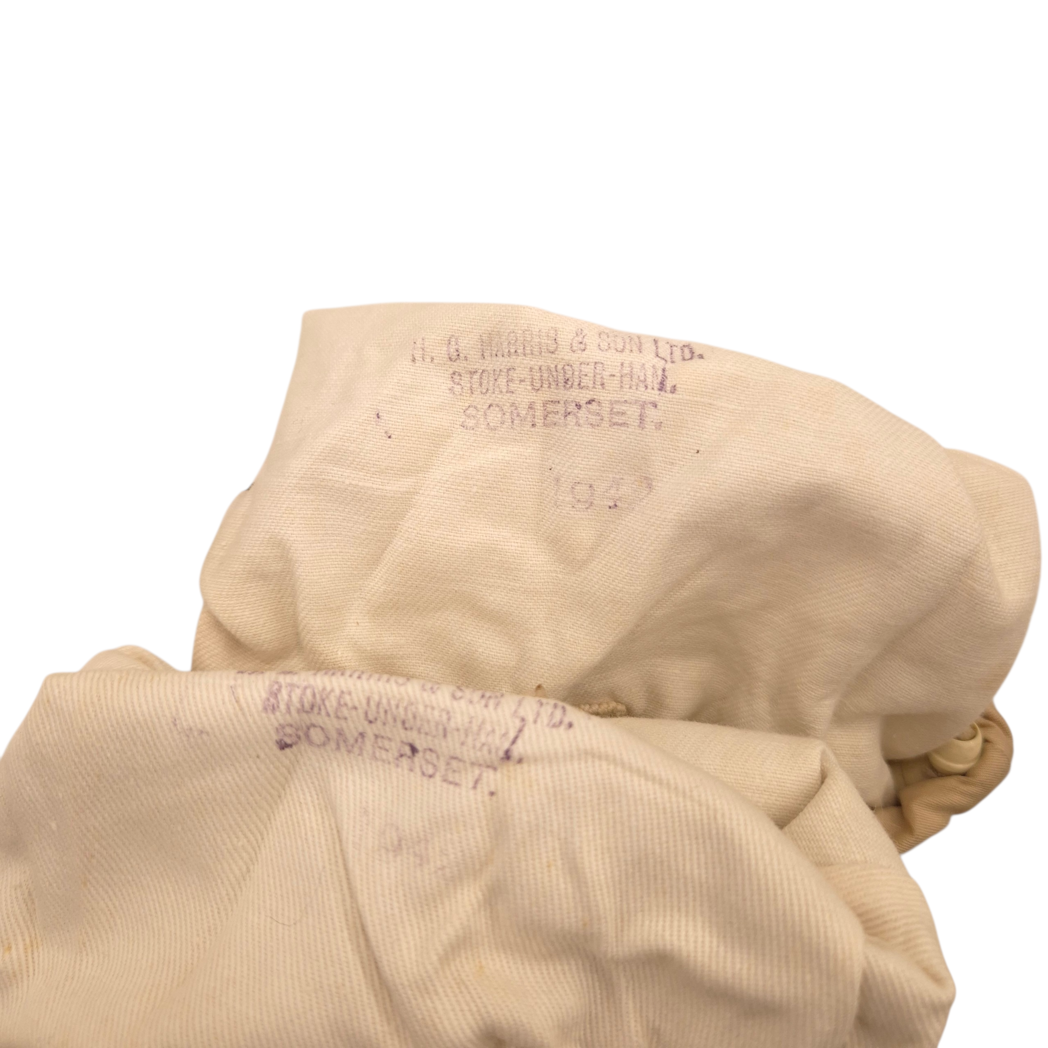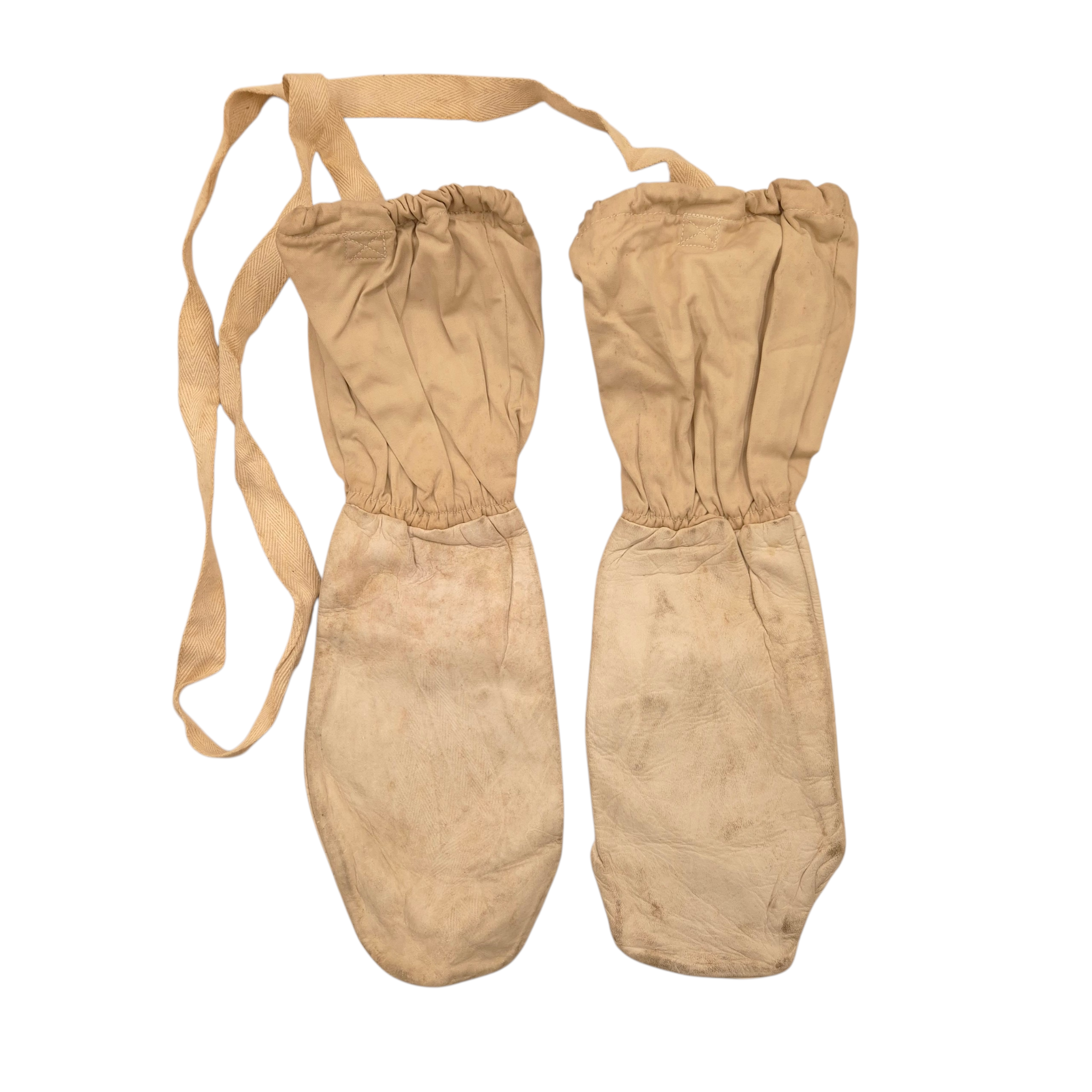 Original WWII British Issue Winter Gloves. Leather tops with material gauntlet style bottoms with each glove connected with a long material retaining strap. Both well marked to the interiors, ‘H.H. Harris & Son Ltd’, and dated 1942 with a WD stamp. In excellent and unused condition.