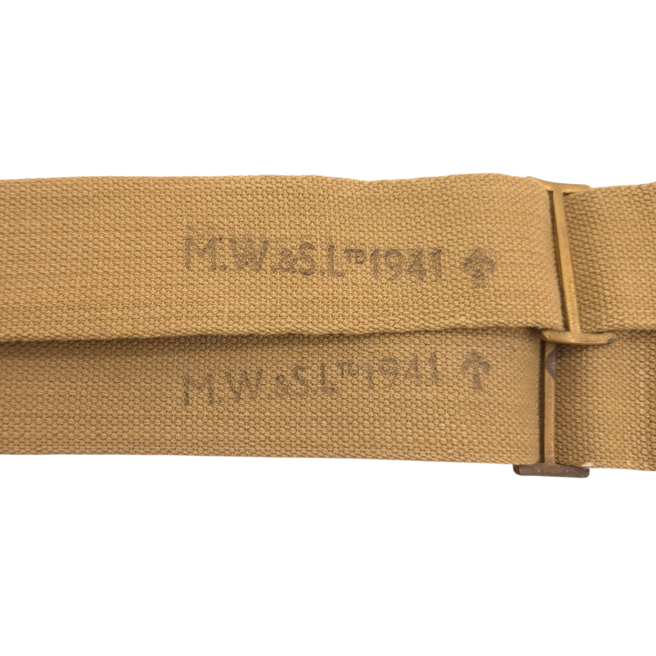 Original pair of WWII British L-straps in very good condition. Made by M.W. & S. dated 1941.