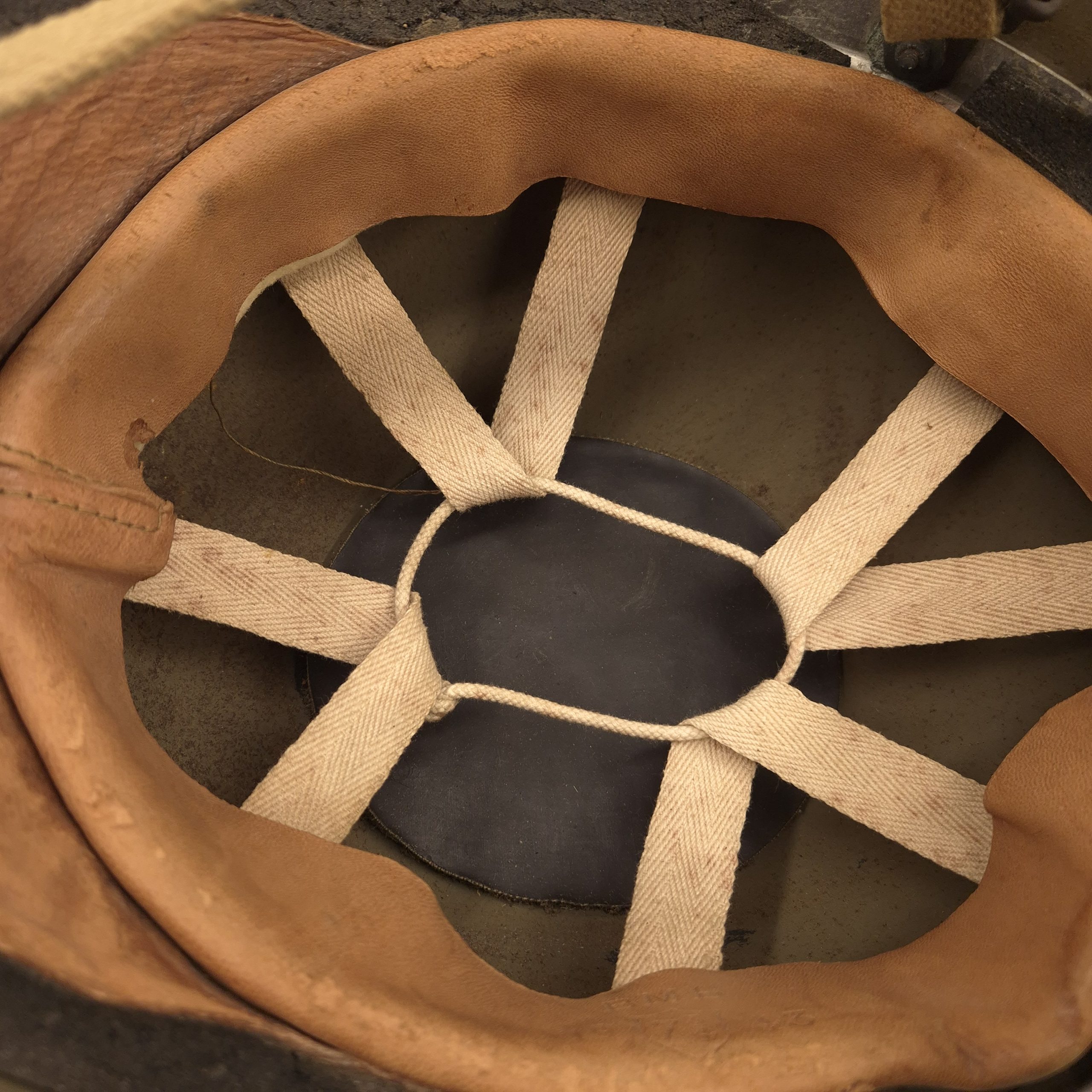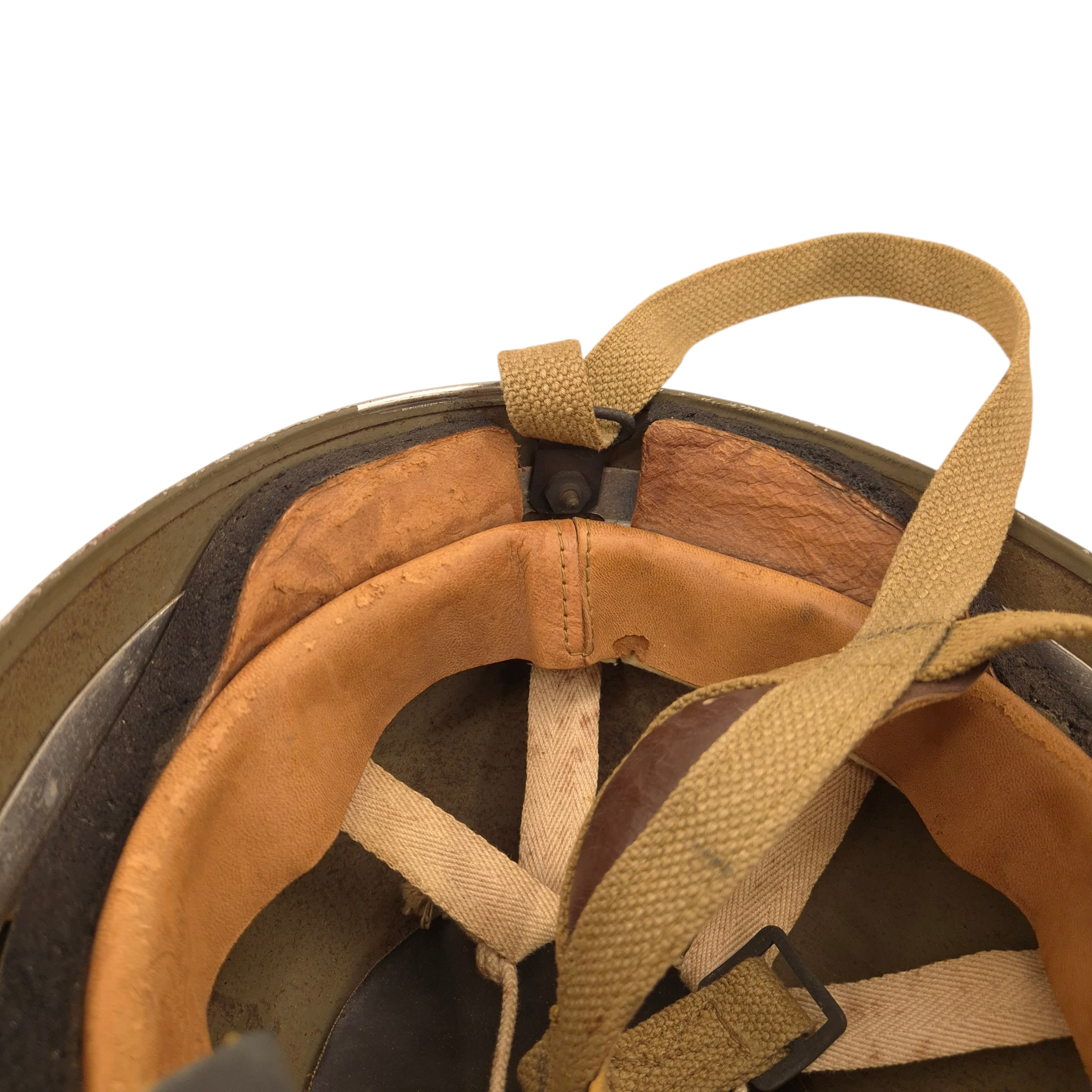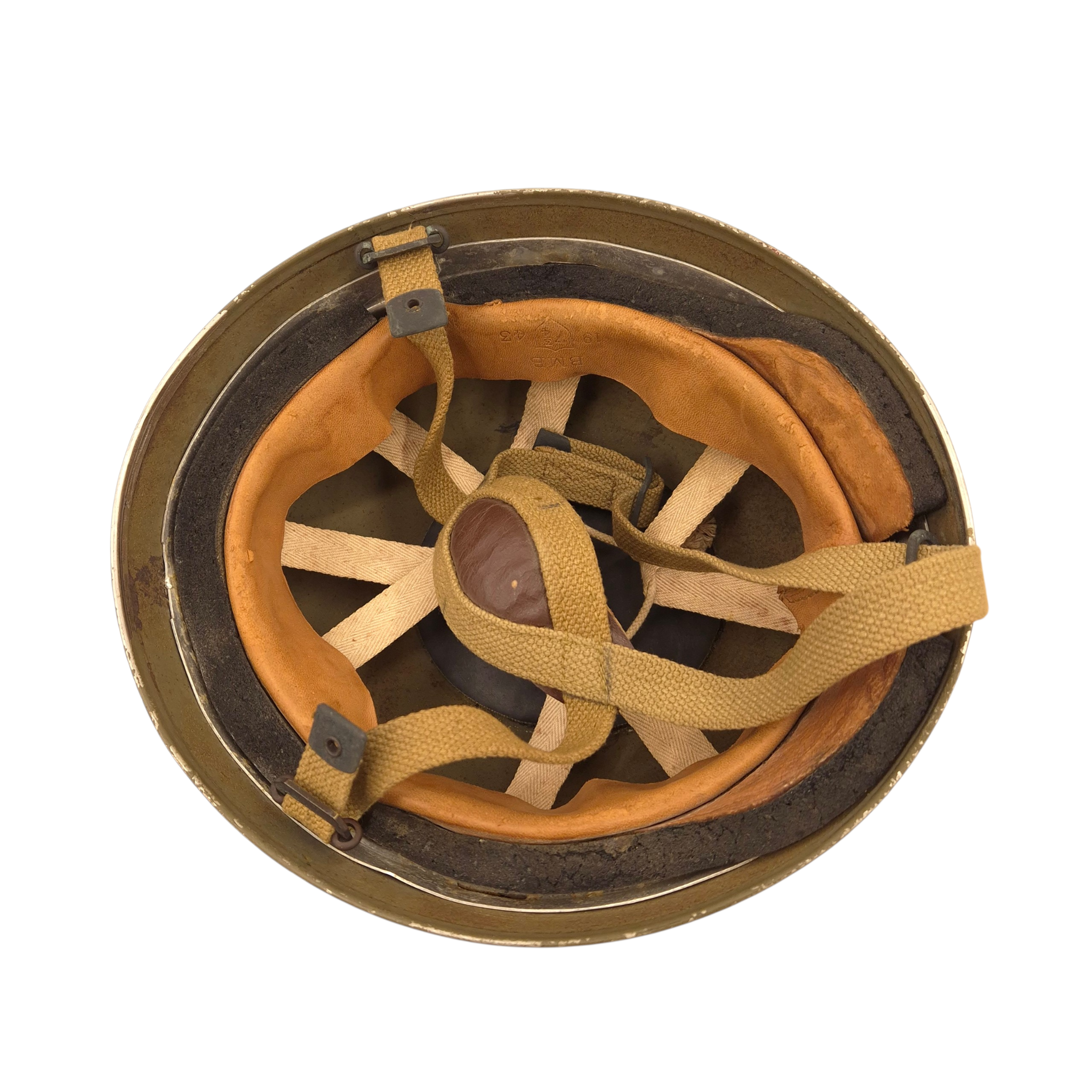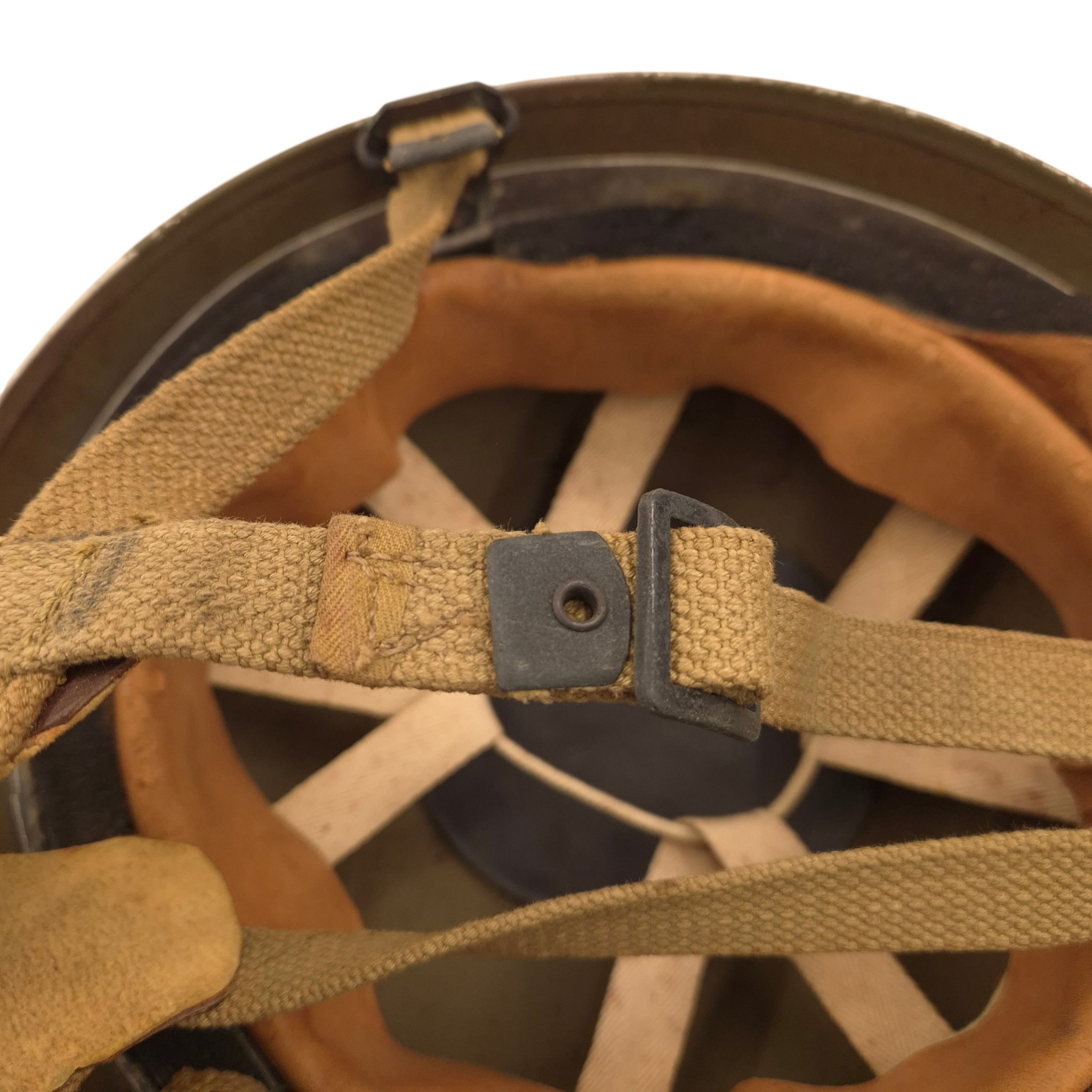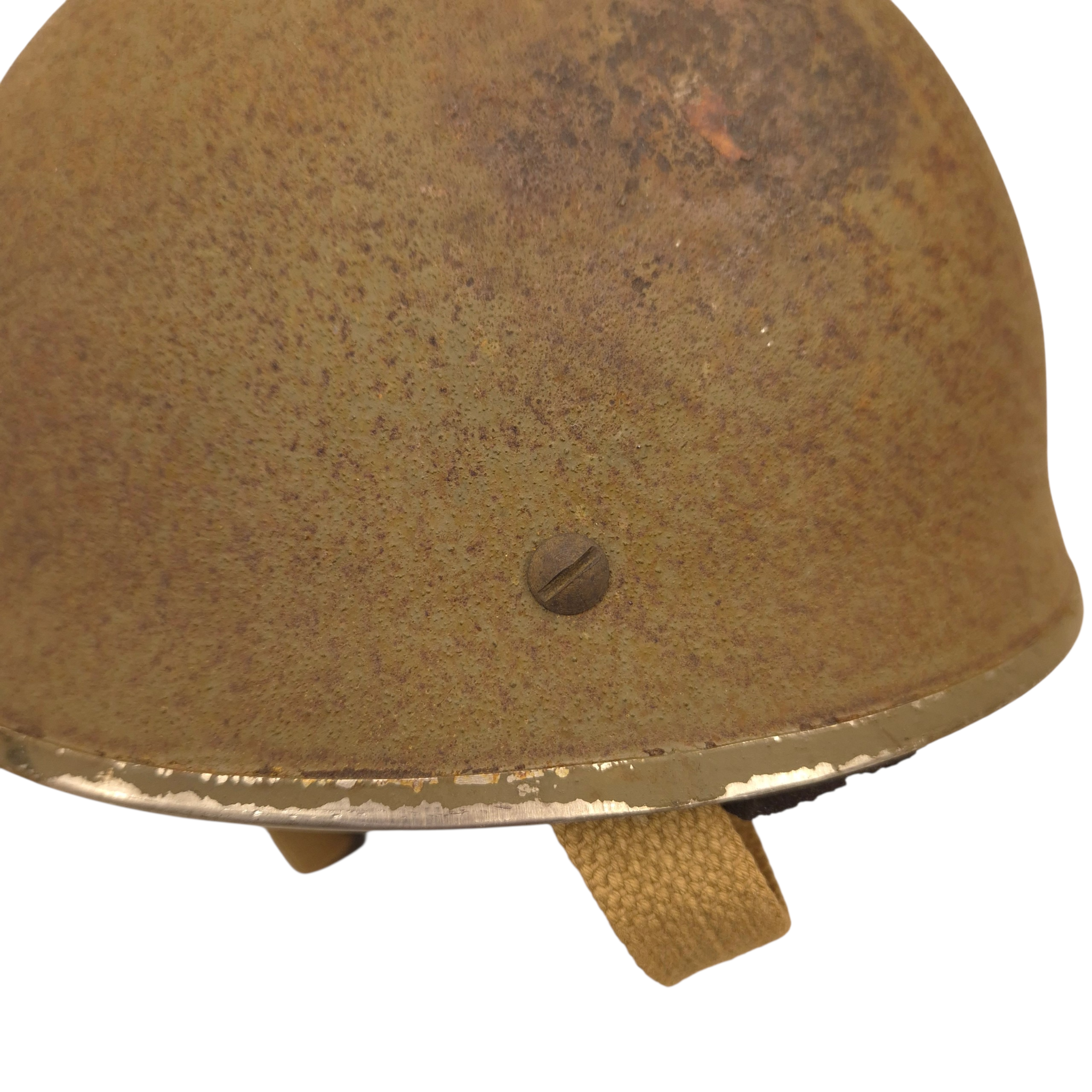 A scarce and desirable 1943-dated British MkII Airborne helmet.