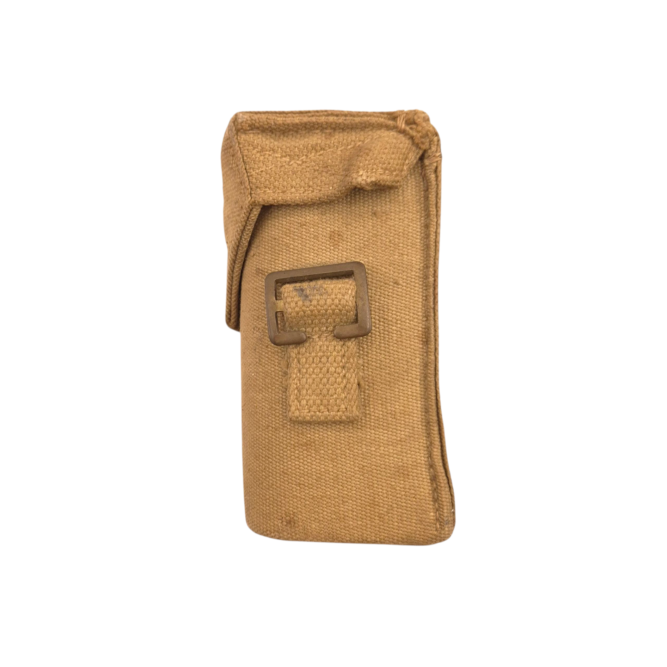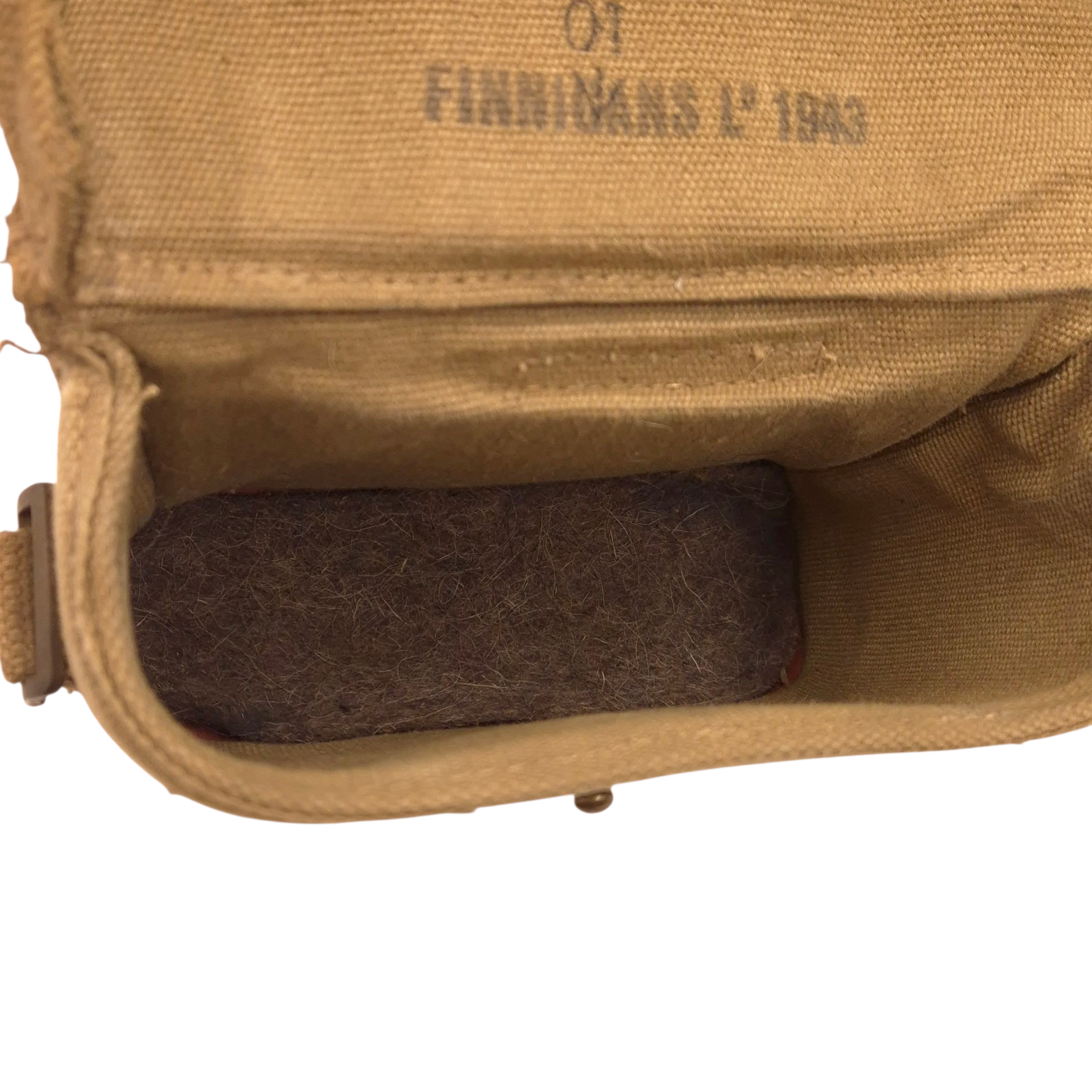 Original WWII British P37 web binocular case. Good condition, maker marked by Finnigans Ltd. and dated 1943. The original protective felt for the binoculars is still intact.