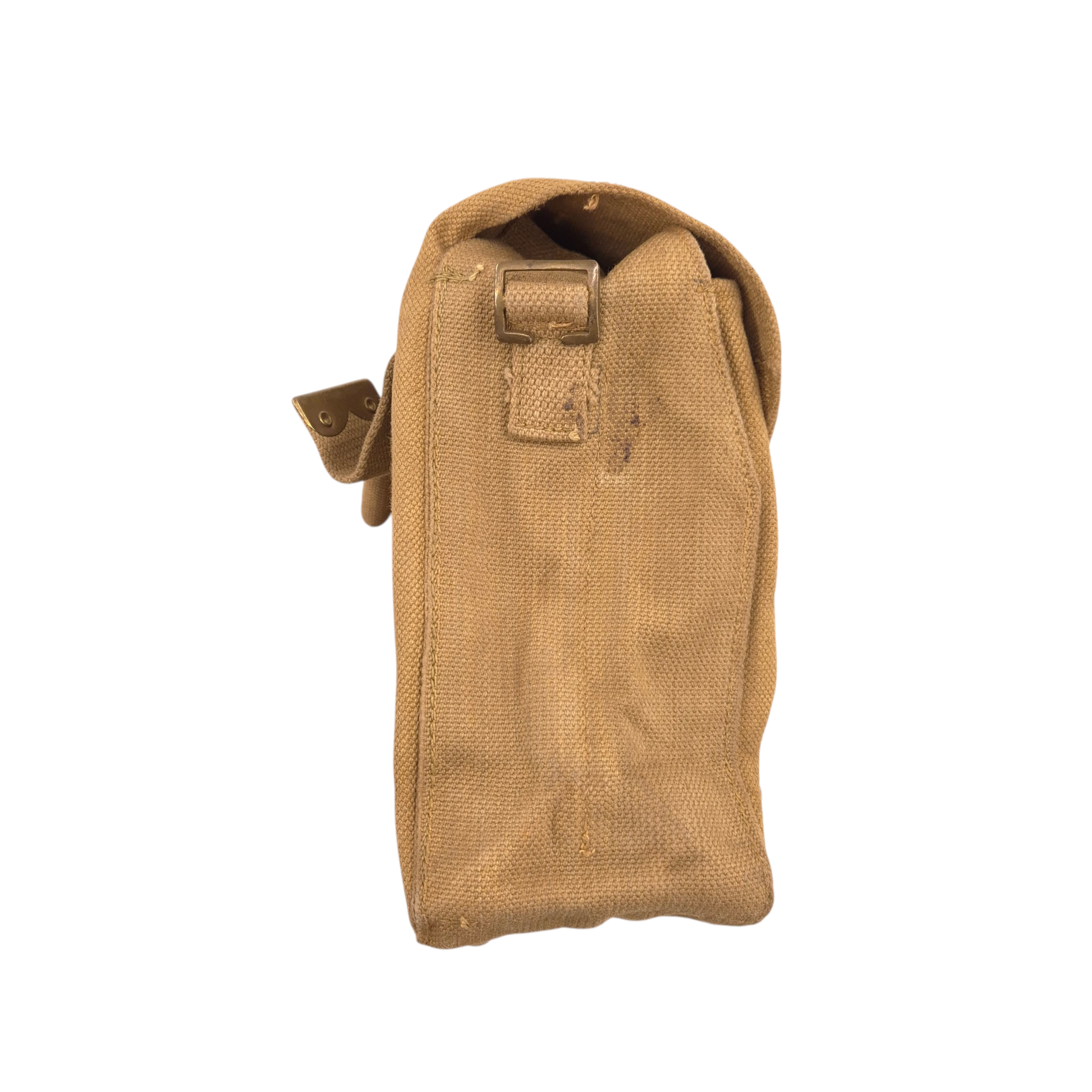 Original WWII British P37 Small Pack (haversack). The pack is maker-marked ‘M’ Ltd. and is dated 1943. The interior partitions are still present. In good condition.