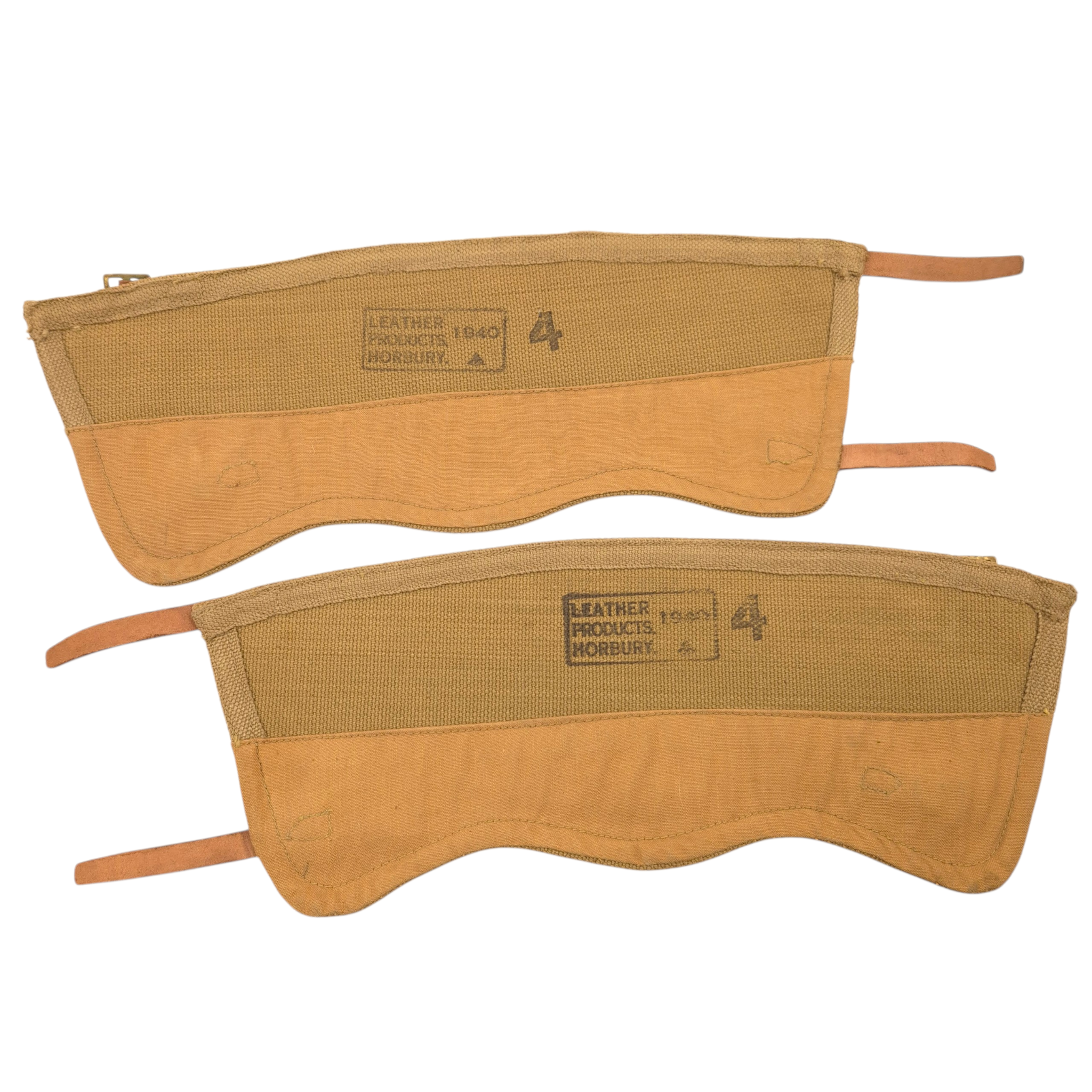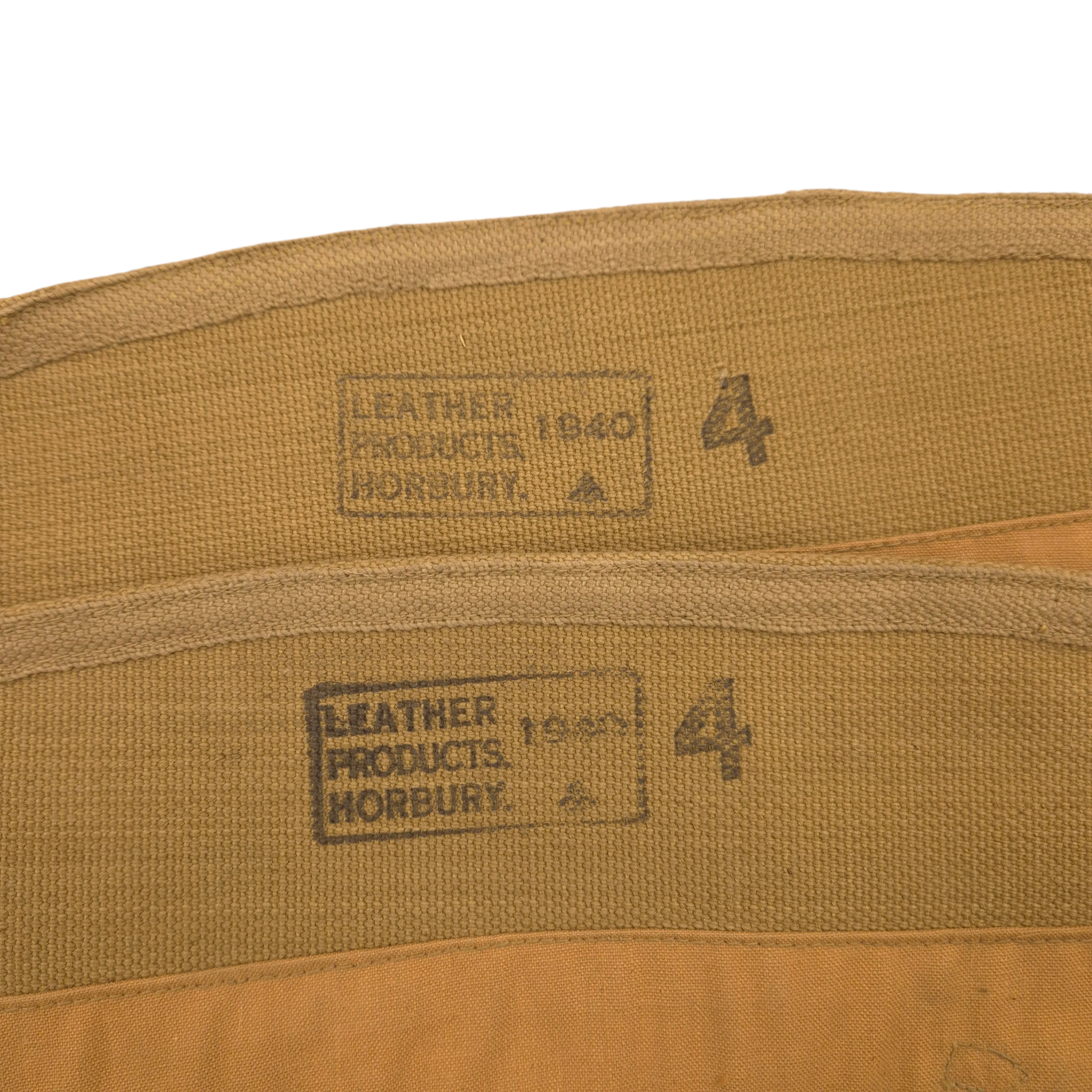 Original pair of WWII British P37 webbing anklets, with early wartime date 1940. They are in very good condition, have intact leather straps with steel buckles and maker marked ‘Leather Products Horbury’ with size 4 and date 1940.