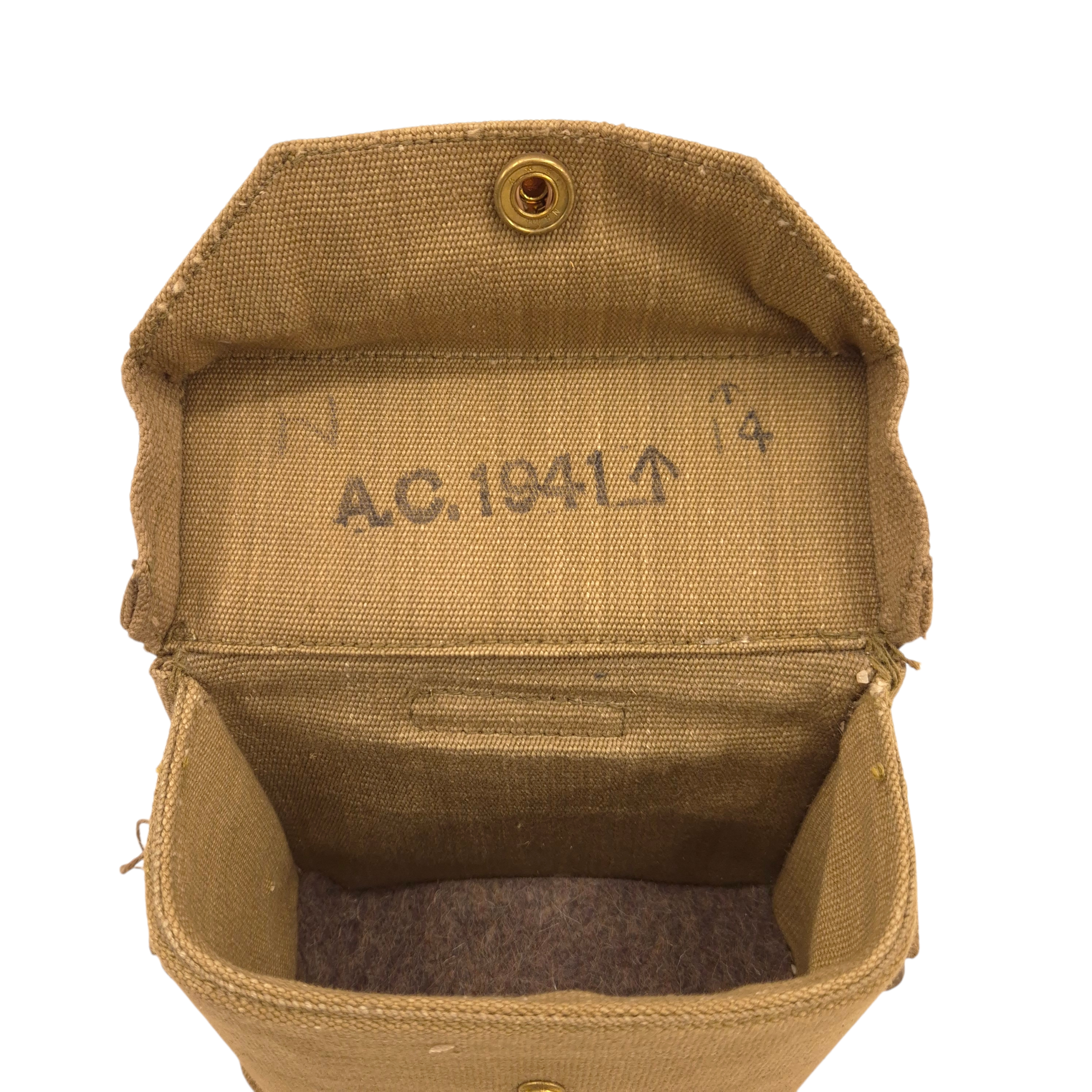 Original WWII British P37 web binocular case. The case is in unused condition, maker marked by A.C. and dated 1941. The original protective felt for the binoculars is still intact.