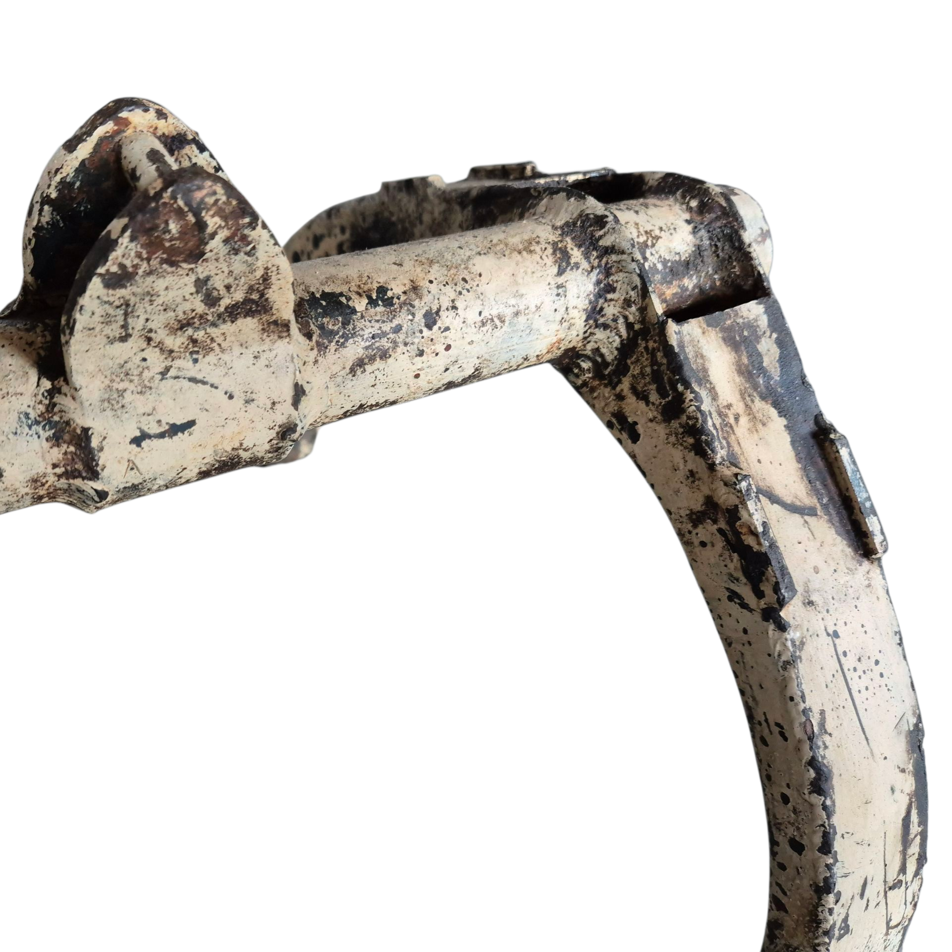 Original WWII ‘C-Type’ parachute drop container shackle, featuring original white winter camouflage paint. Shackles (clamps) in this condition with intact original markings are extremely rare. This example was not found in the ground and is in very good condition.