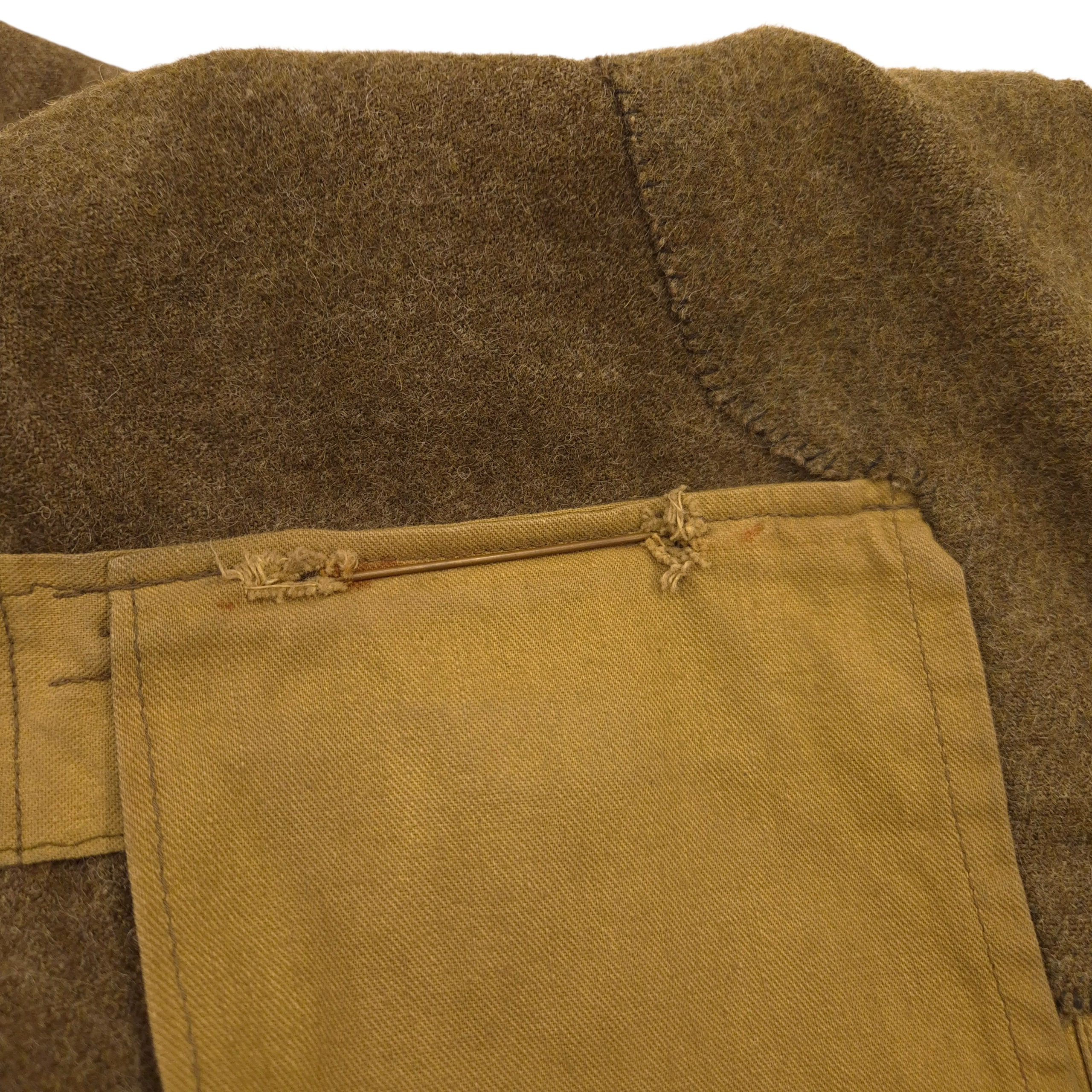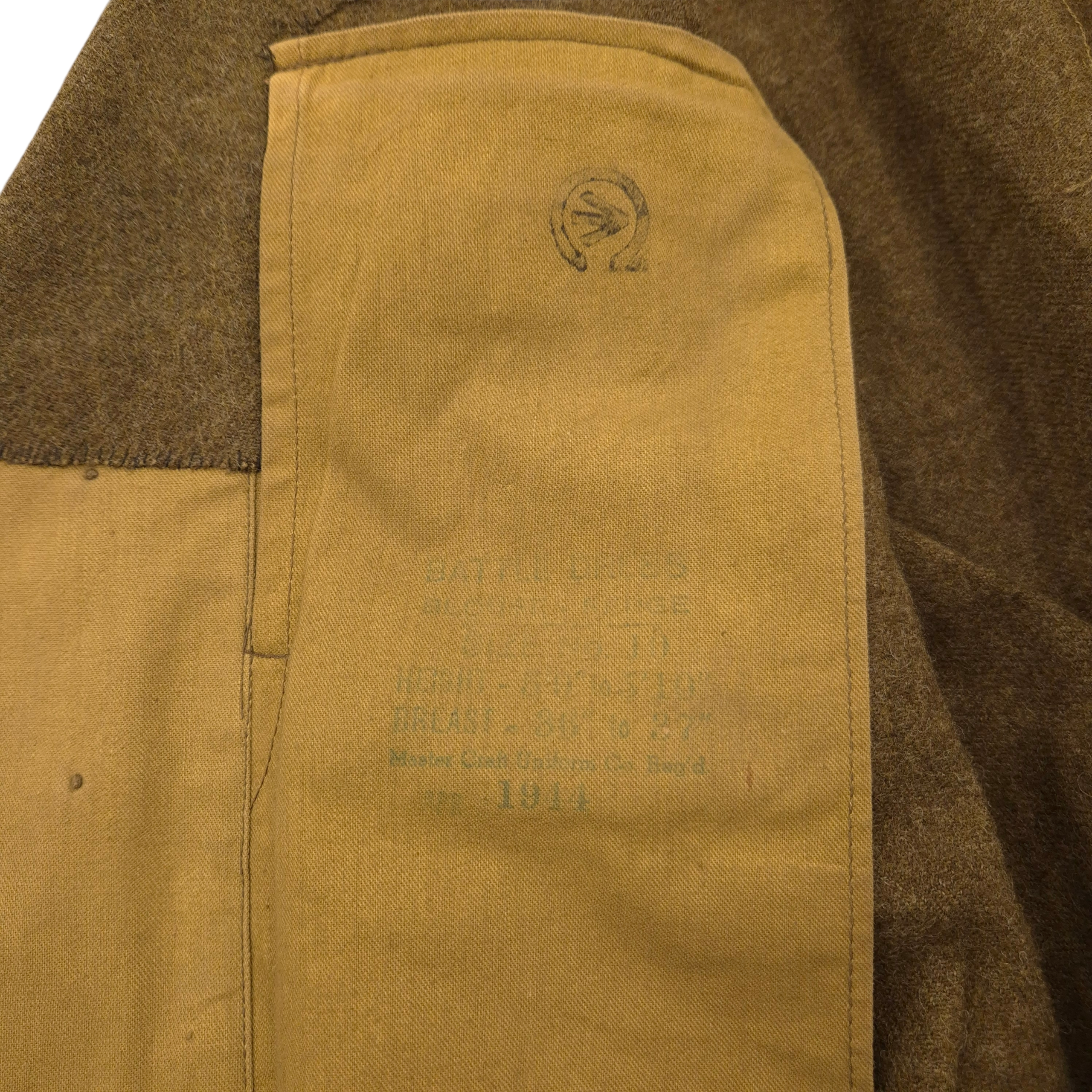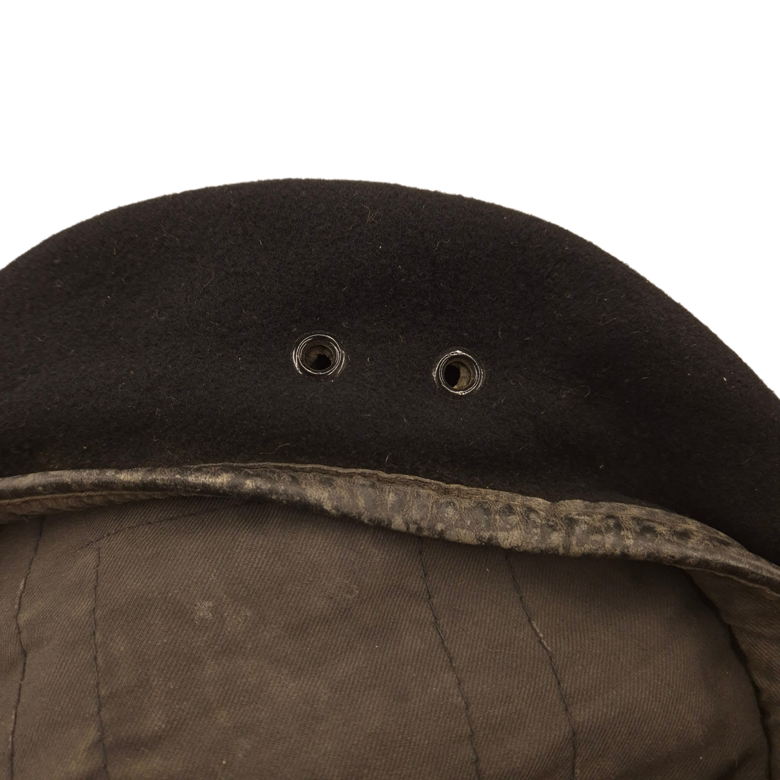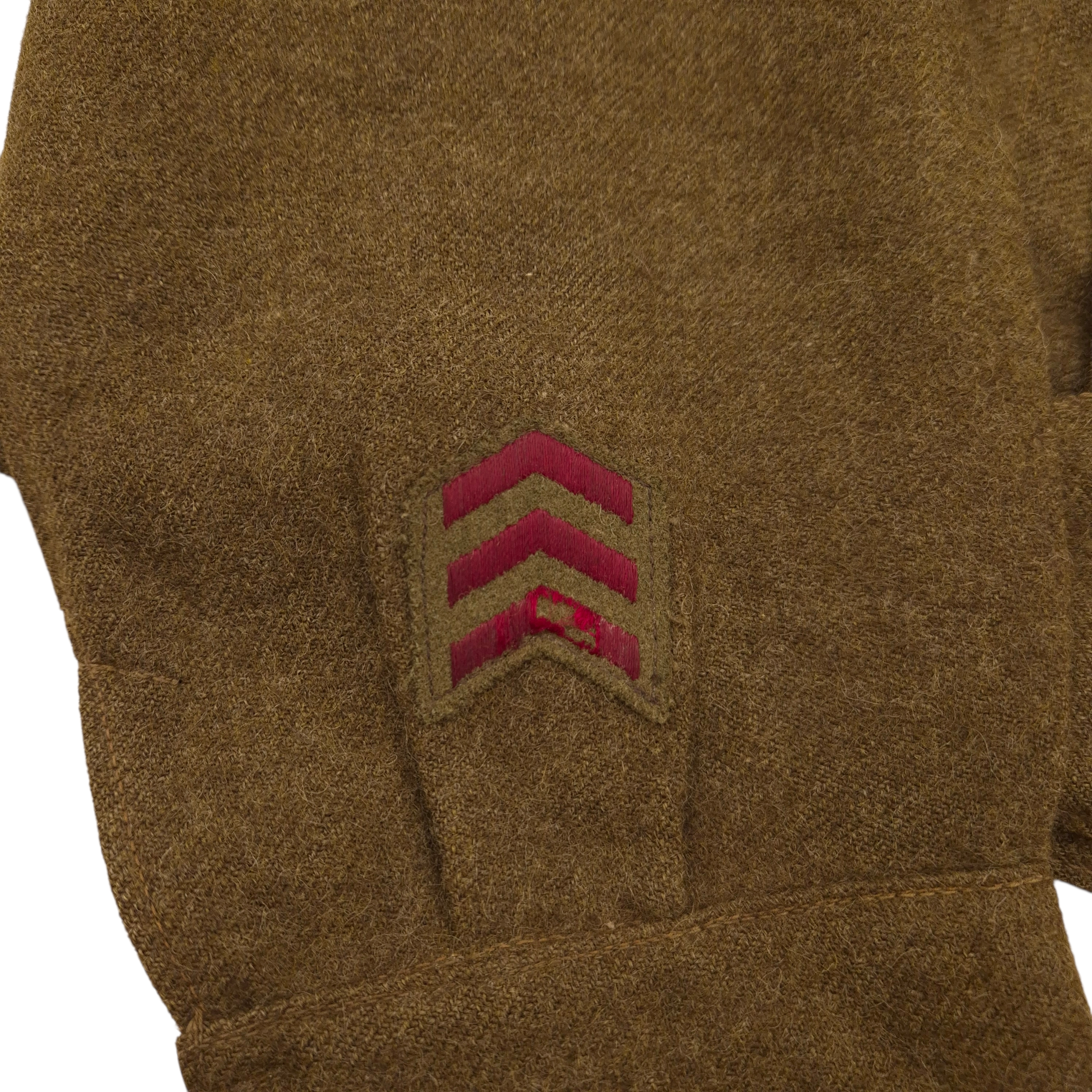 Original WWII Calgary Regiment – 14th Canadian Armoured Regiment (14 CAR), battle dress jacket and its original beret. The jacket shows normal signs of wear consistent with service use. The jacket is dated 1944, in size 10. All insignia are original and period-applied, including: A pair of English-made embroidered shoulder titles for the Calgary Regiment, cloth formation patches for the 1st Armoured Brigade with 14 CAR (14th Canadian Army Tank Regiment) with the Tank-badge on the sleeve and three service-years chevrons. The jacket shows period tailoring, with a straighter back panel and an opened-up collar for a more stylish look, while still being fully closable. A stunning RAC black beret, complete with its originally applied cap badge. The beret was manufactured by Supak and is WD stamped “M,” dated 1944. The cap badge has a plastic backing plate on the inside, which was a common practice among soldiers. Jacket has the medal ribbon bar present, the Canadian Volunteer Service Medal ribbon was found in the breast pocket. A rare to find jacket with fascinating regimental history.