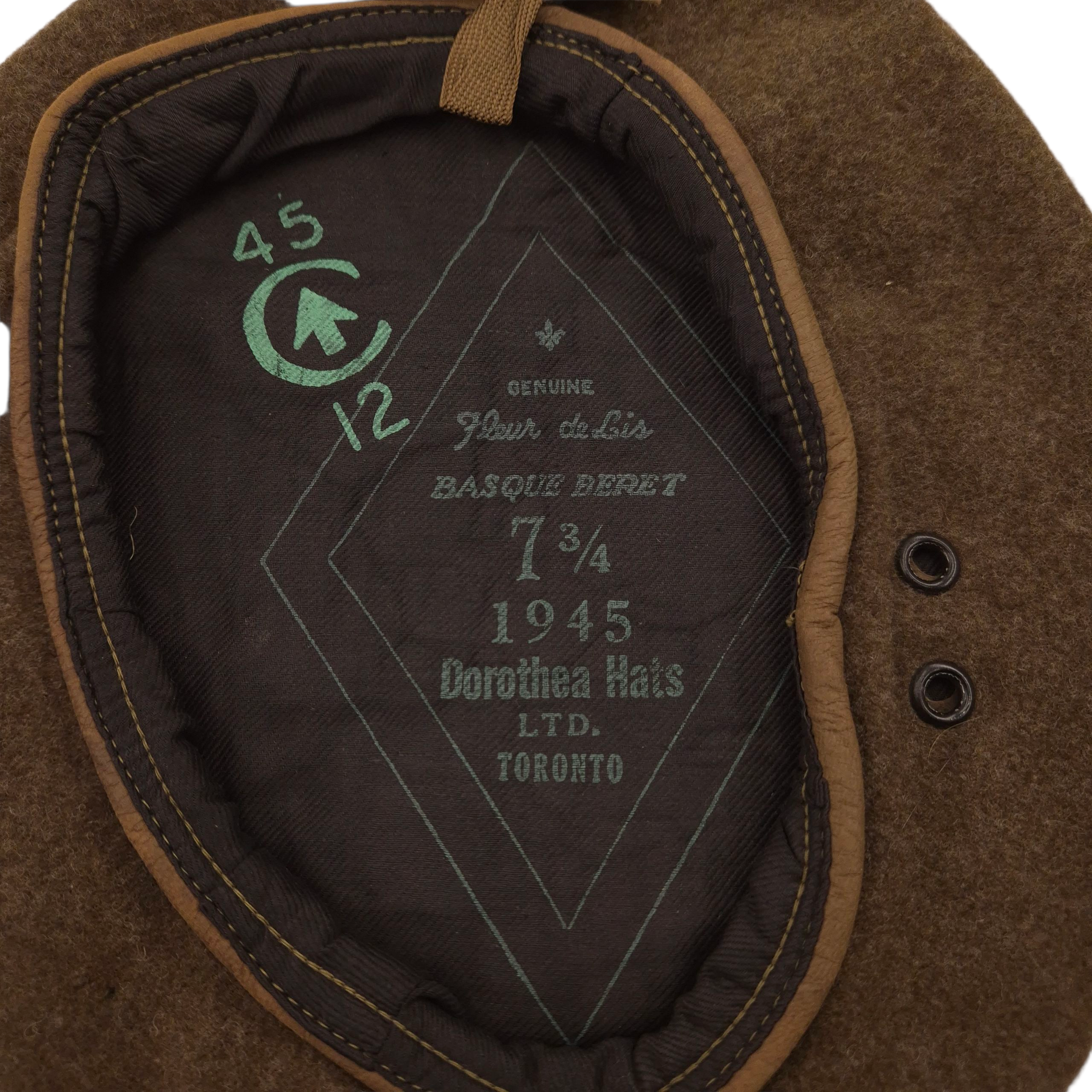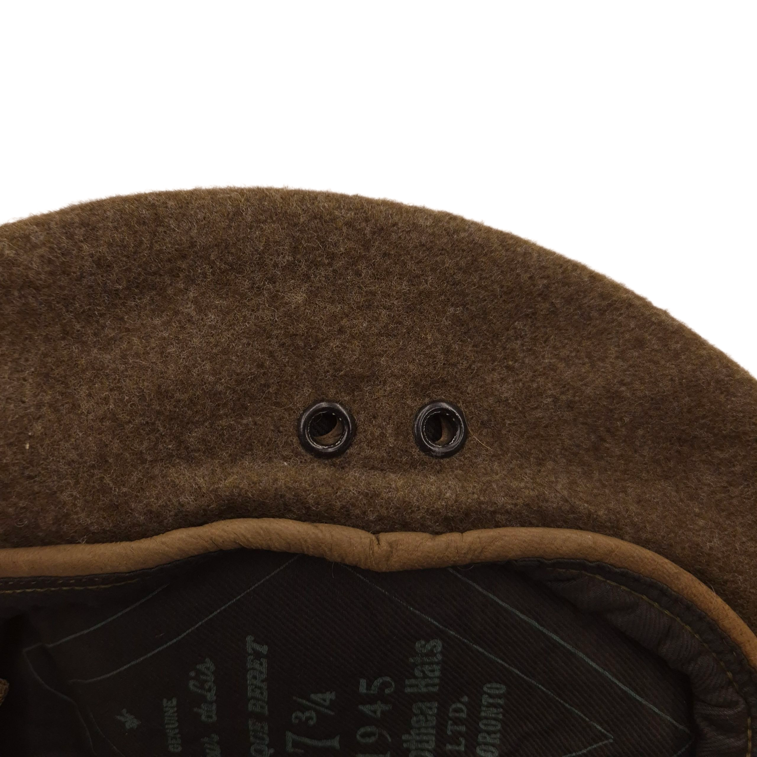 Original Canadian Army beret in very good condition. Manufactured by Dorothea Hats Ltd. dated 1945, size 7 3/4. The beret features two holes for a cap badge and shows no damage.