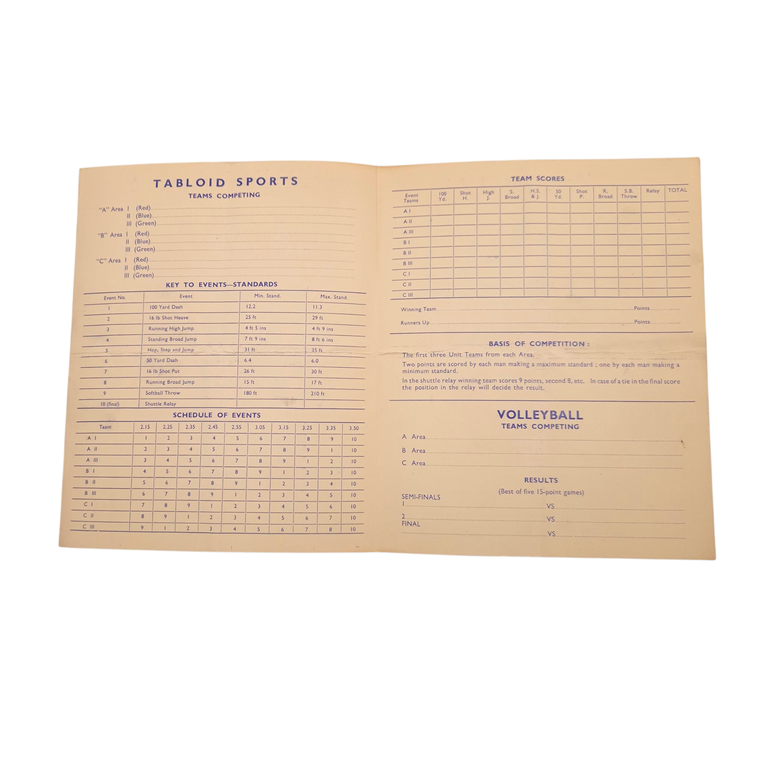 Original WWII Canadian Army England Championships 1945 program for Tabloid Sports & Vollyball Finals. Good condition overall. A nice display item.