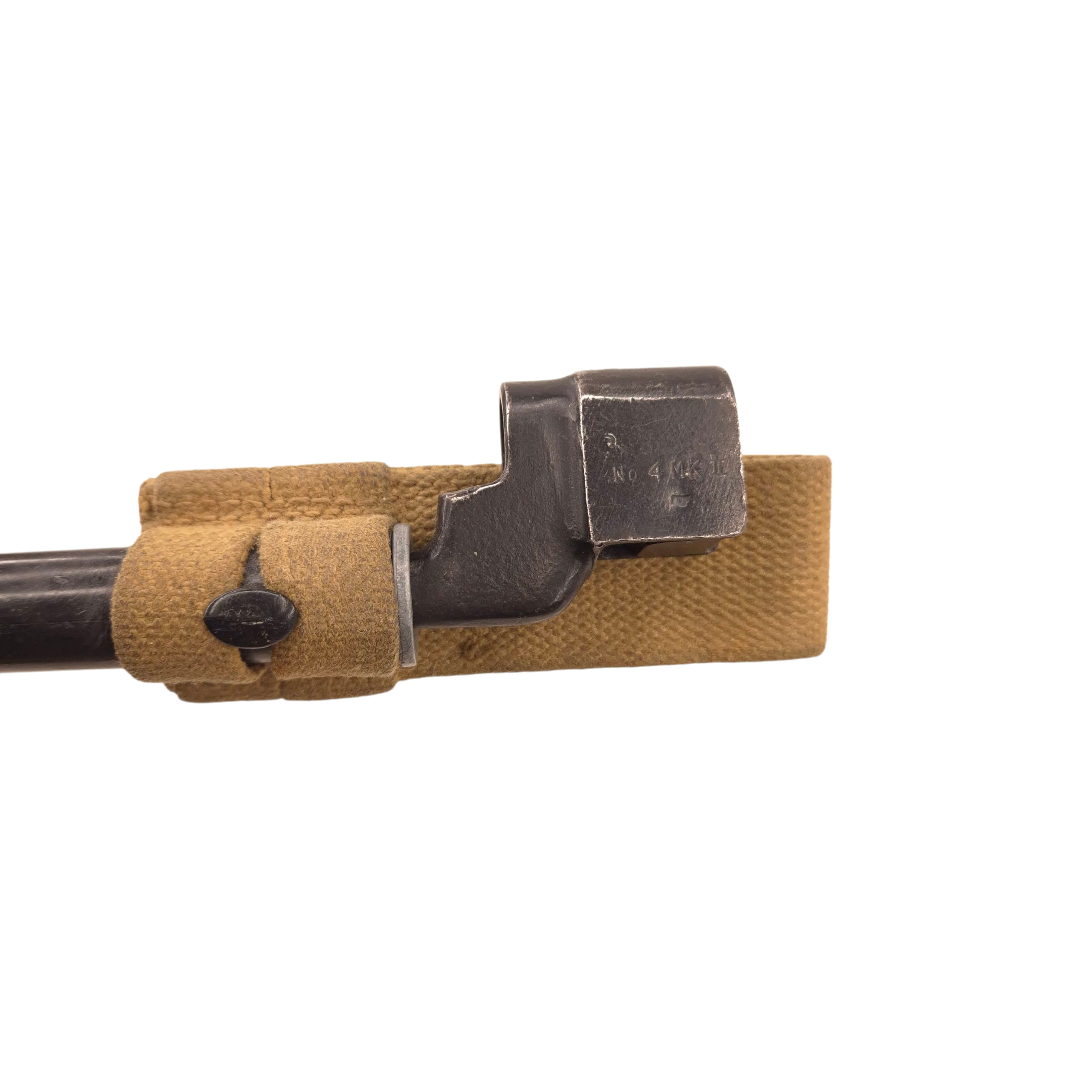 Original WWII Canadian Long Branch Bayonet ‘No4 MkII’ with webbing frog . Very good condition.