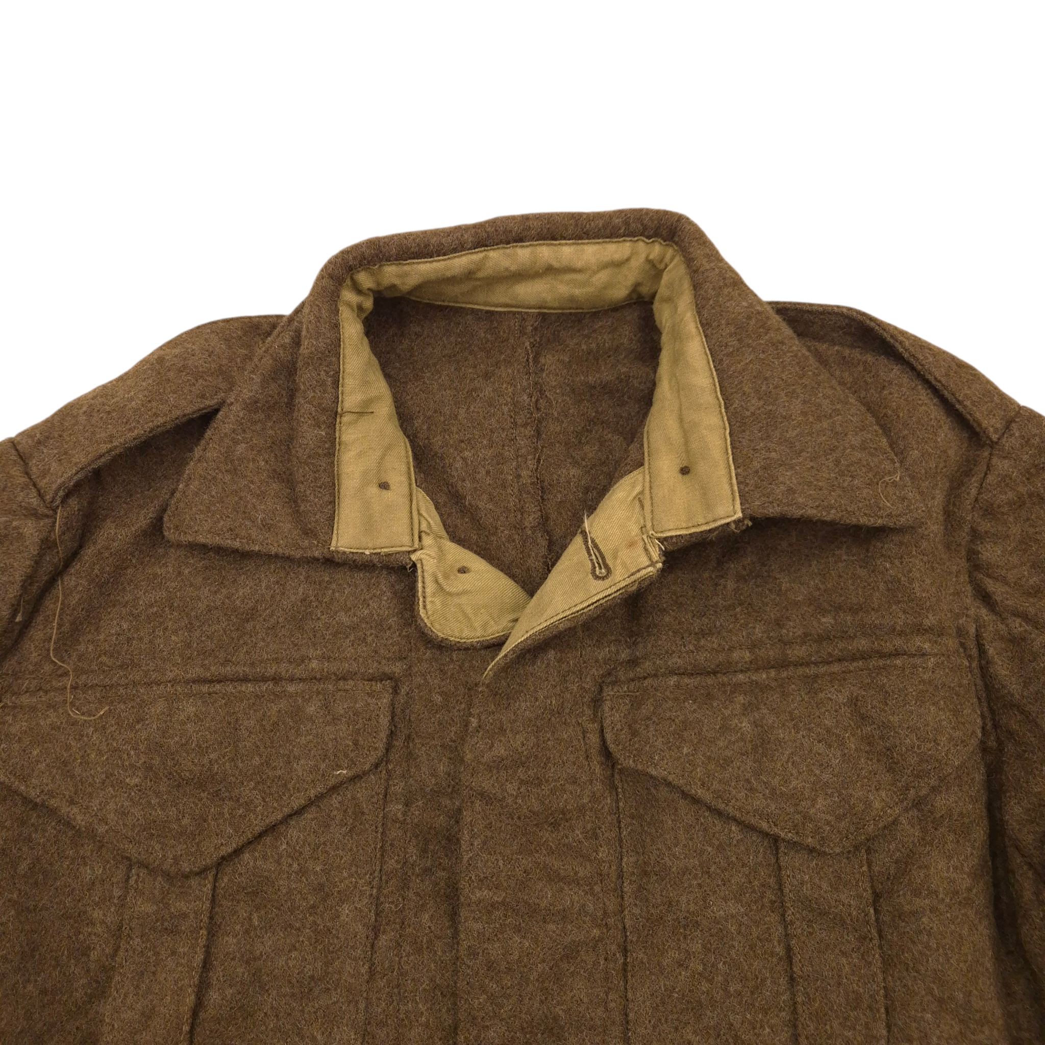 Original WWII Canadian P37 Battle Dress Blouse. This battledress blouse retains its maker’s stamp by Mastercraft Uniform Co, dated January 1945, size Oversize. It’s a normal large size jacket that fits a mannequin perfectly. The jacket is in very good condition, one closing button is missing.