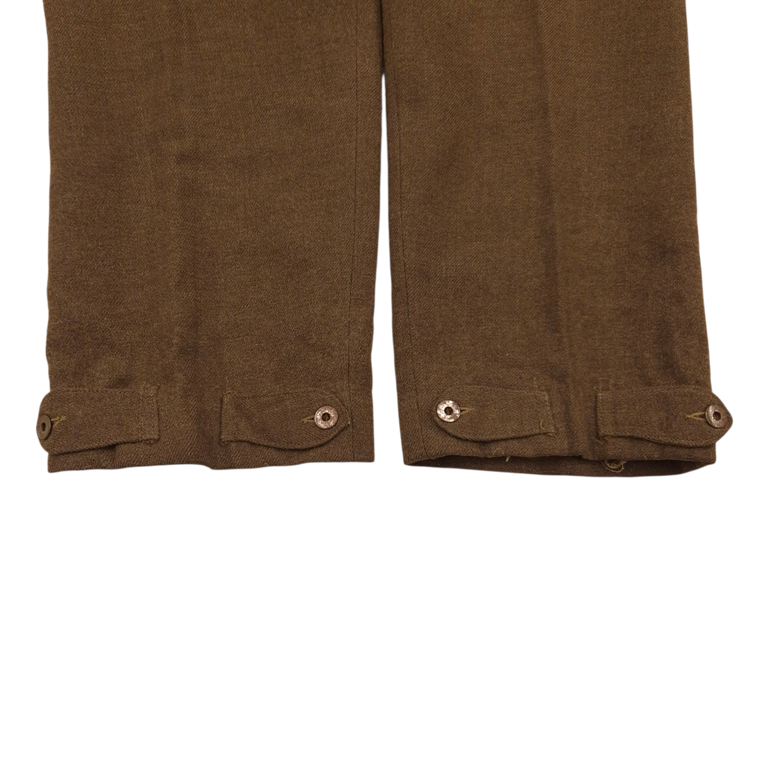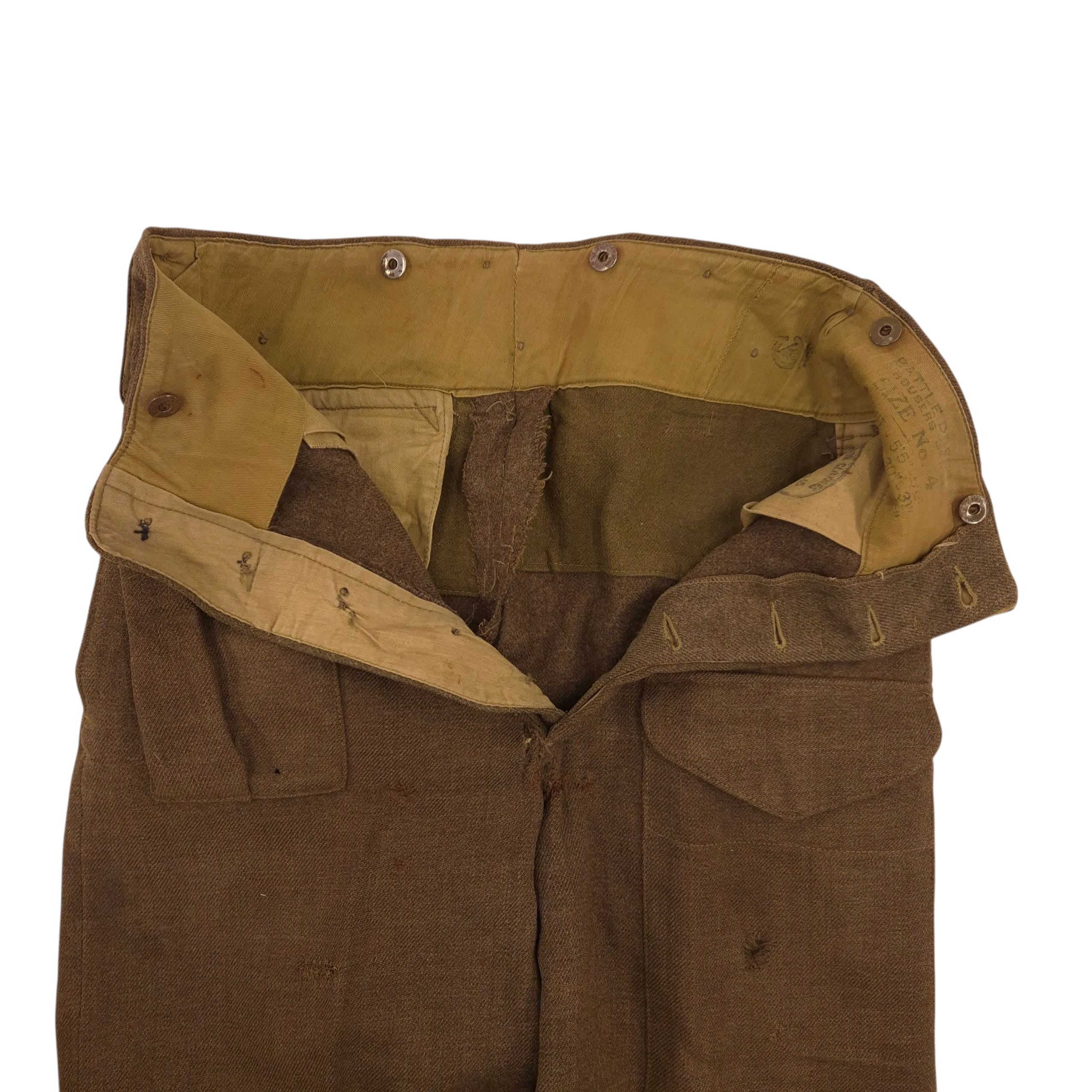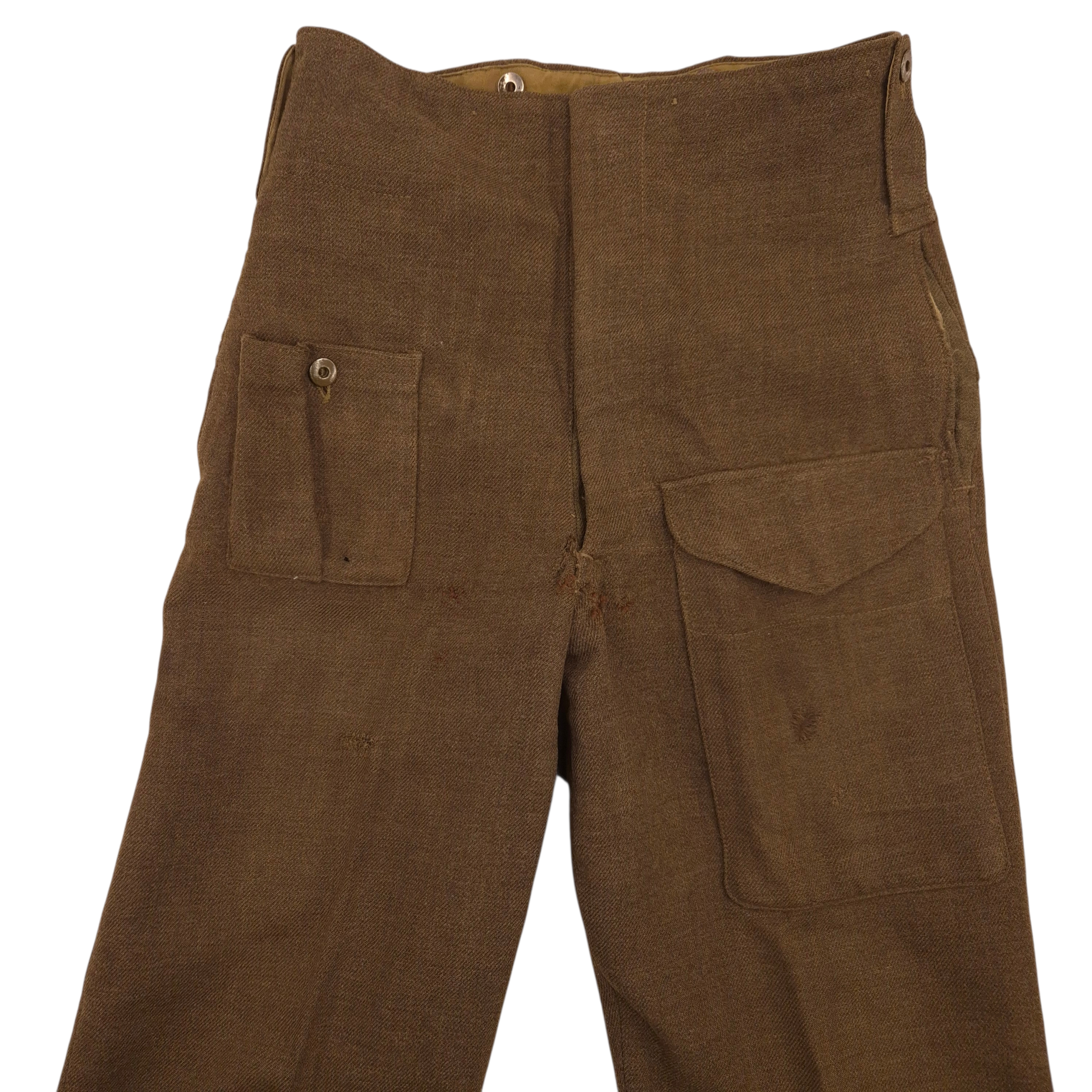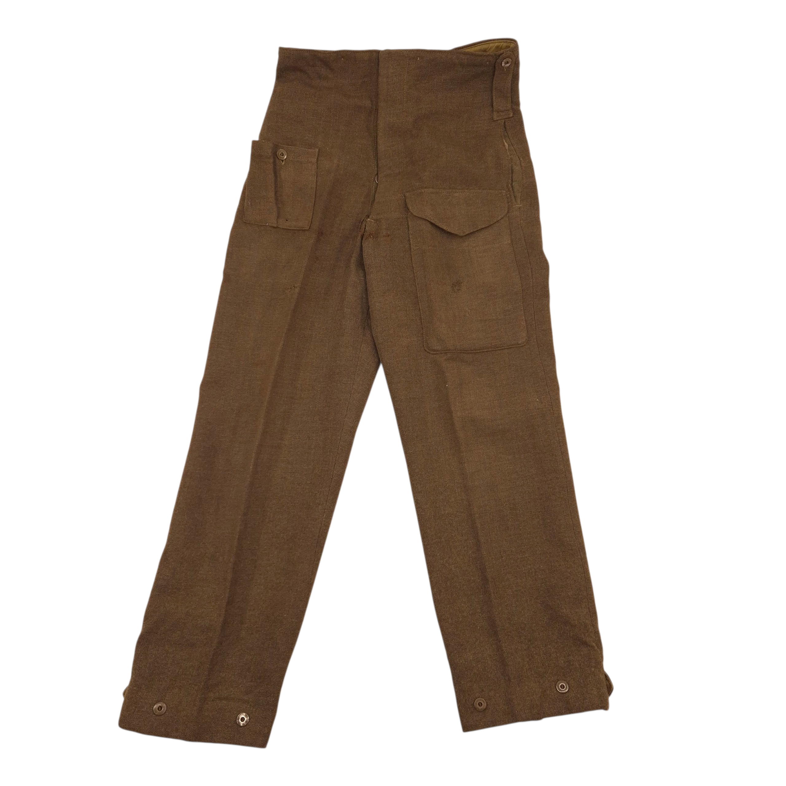 Original WWII Canadian P37 Battle Dress Trousers. The trousers are maker marked Park Manor Clothes Ltd from Toronto, dated May 1945 in size 4. The trousers are in worn condition, shows small damages.