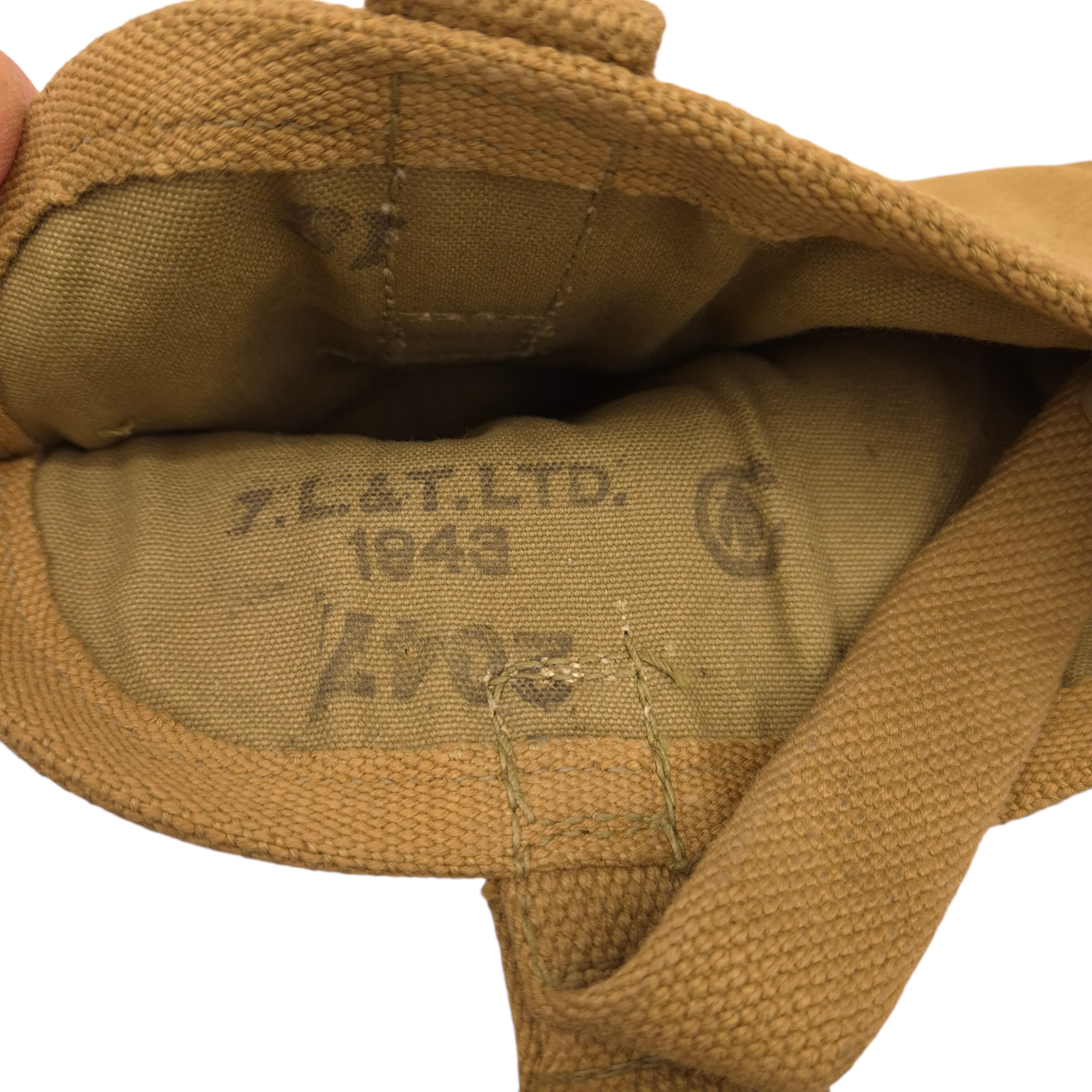 Original WWII Canadian P37 webbing carrier for the entrenchingtool . The web carrier is in unused condition, nicely maker marked by ZL&T Ltd. C broad arrow stamped and dated 1943.