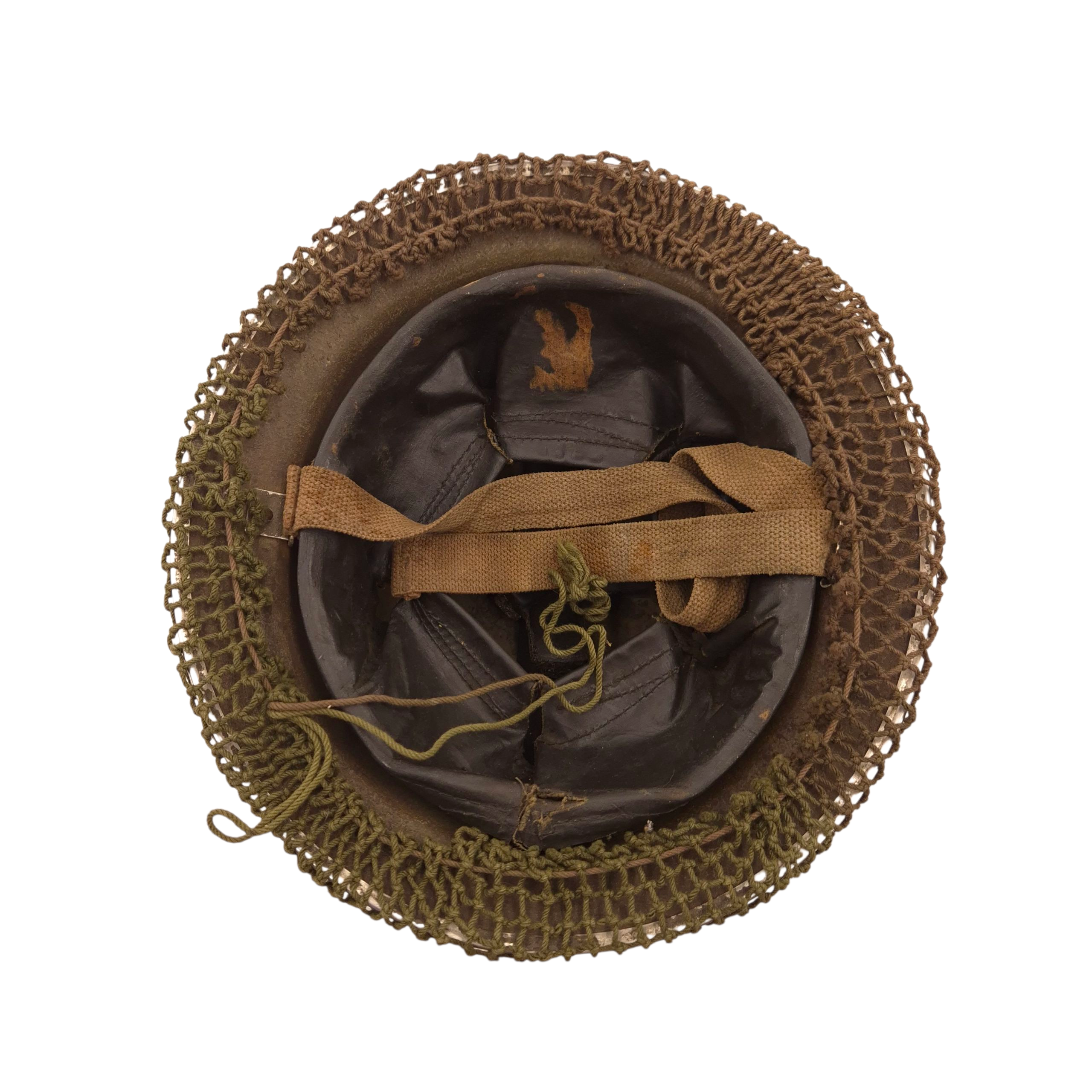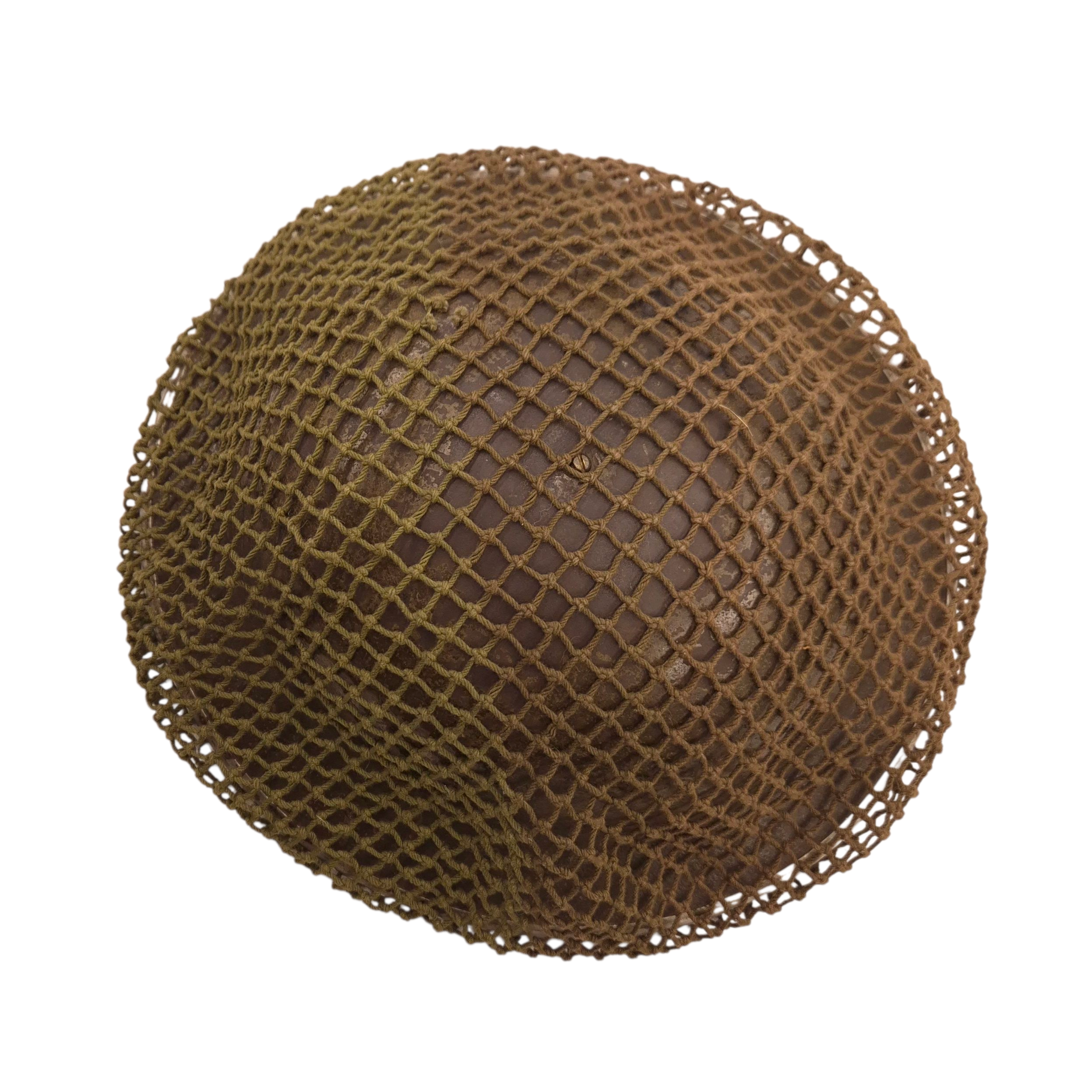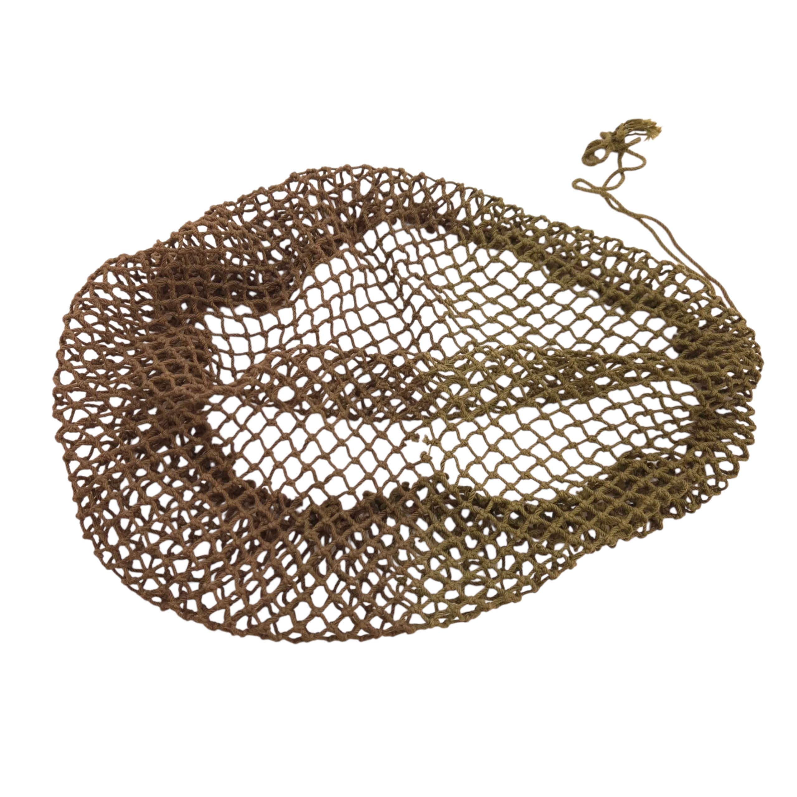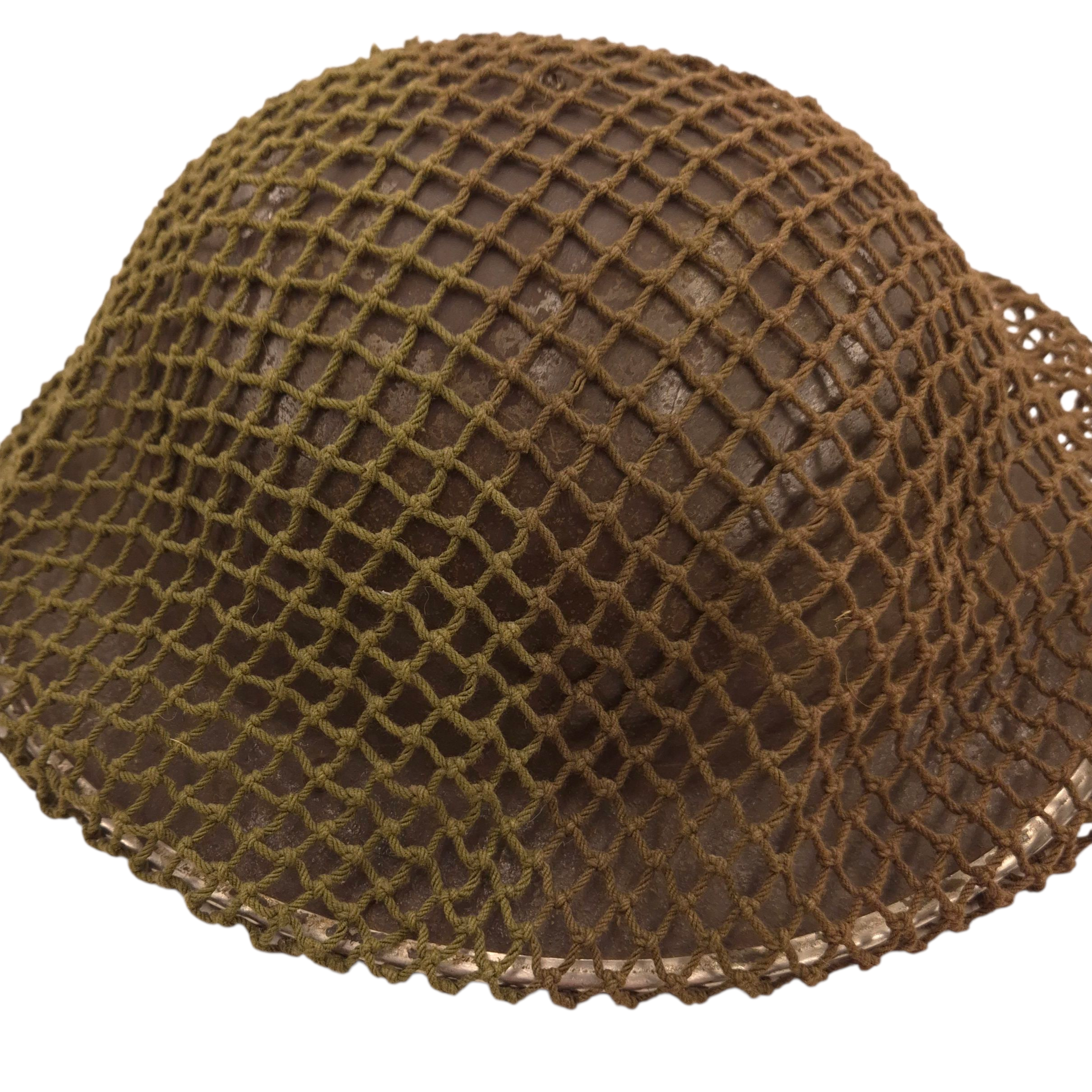 Original WWII Canadian ‘two-tone’ camouflage helmet net. The brown-green net is in good condition with full length string.