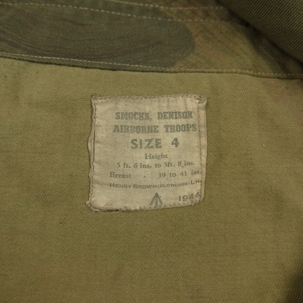 Original WWII British ‘Airborne Troops’ 2nd pattern Denison Smock. This Denison Smock is dated 1944, is in good used condition with expected signs of wear. The smock retains its readable maker’s label: Henry Brown (Clothiers) Ltd. size 4, which is considered one of the most desirable sizes for a Denison smock, 1944. The half-zip is fully functional and marked Swift. The tail is still present, one press-stud is replaced (You wouldn’t notice if you didn’t know.). All brass press-studs are marked NEWEY.