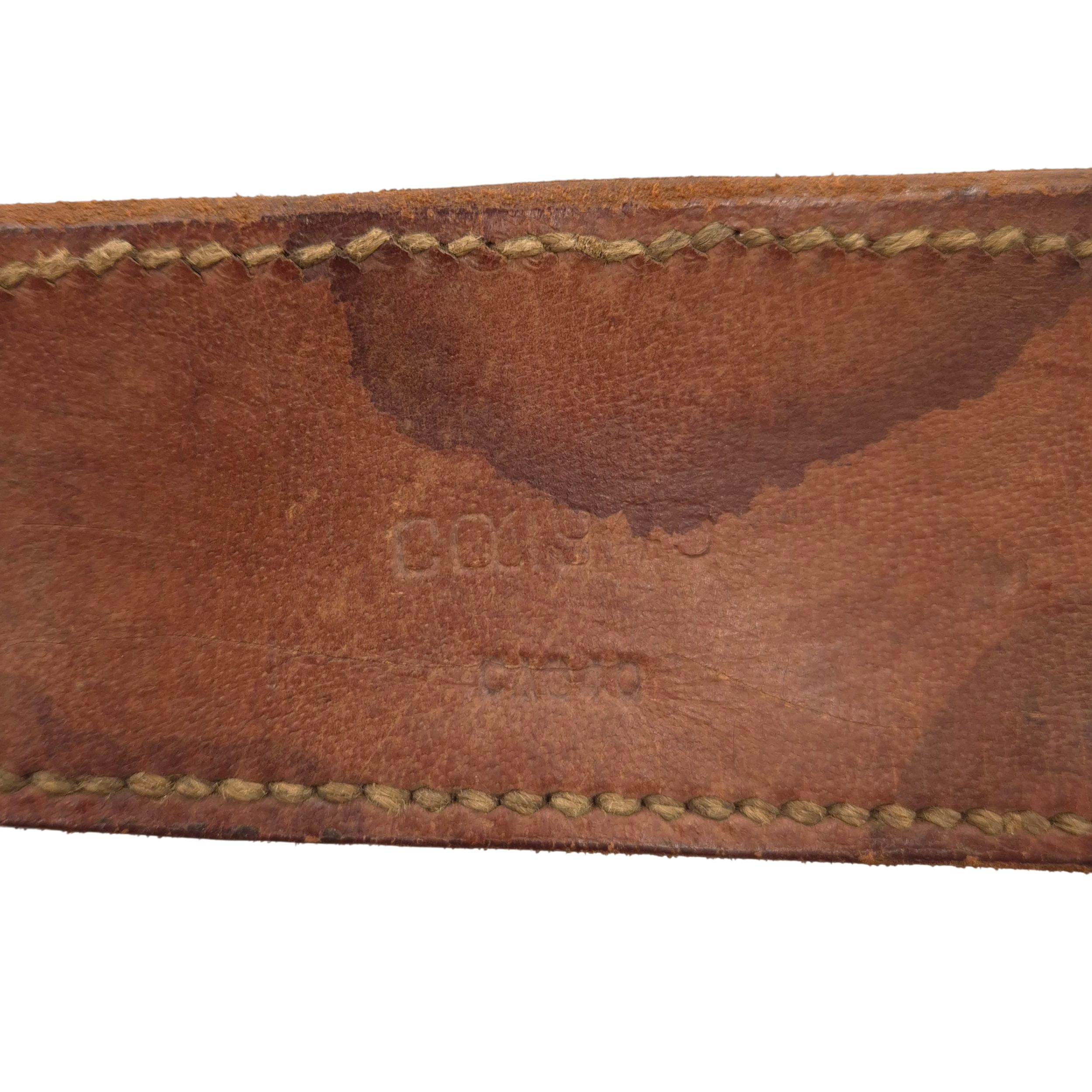 Original WWII Dha-type machete leather scabbard. This pattern was produced in India and issued to British and Commonwealth troops serving in the Far East. The scabbard is dated 1945 and is in good condition. One side is open to accommodate the machete.