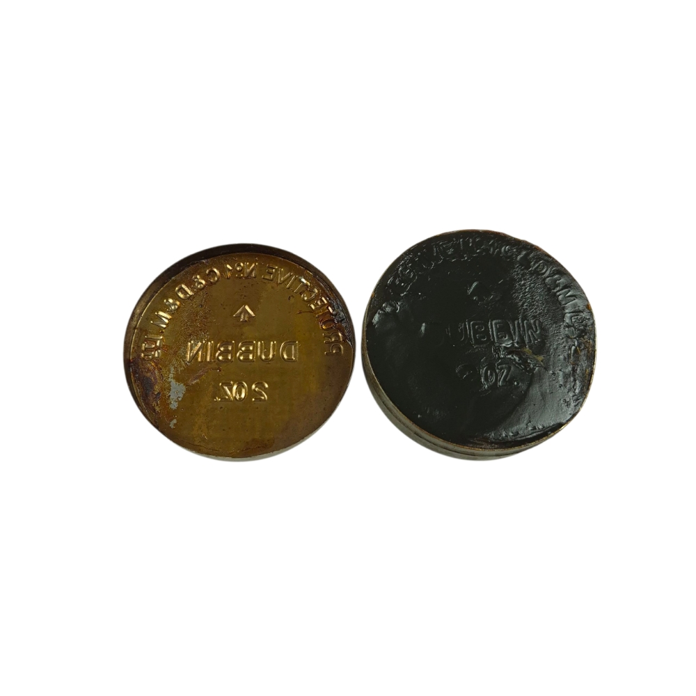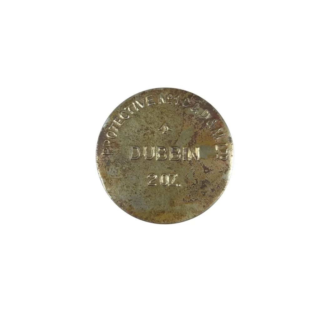 Original WWII Dubbin Protective No.1. Made by Carr & Day & Martin. Embossed tin-plated container featuring the Broad Arrow mark. Still contains the original contents and remains complete.