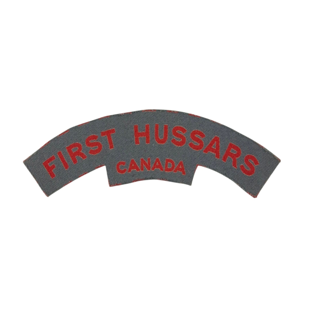 Original WWII First Hussars (1H) printed shoulder title. The 1st Hussars was part of the 2nd Brigade. English made printed shoulder title for Canadian troops overseas. Good mint condition. Hard to find patch!