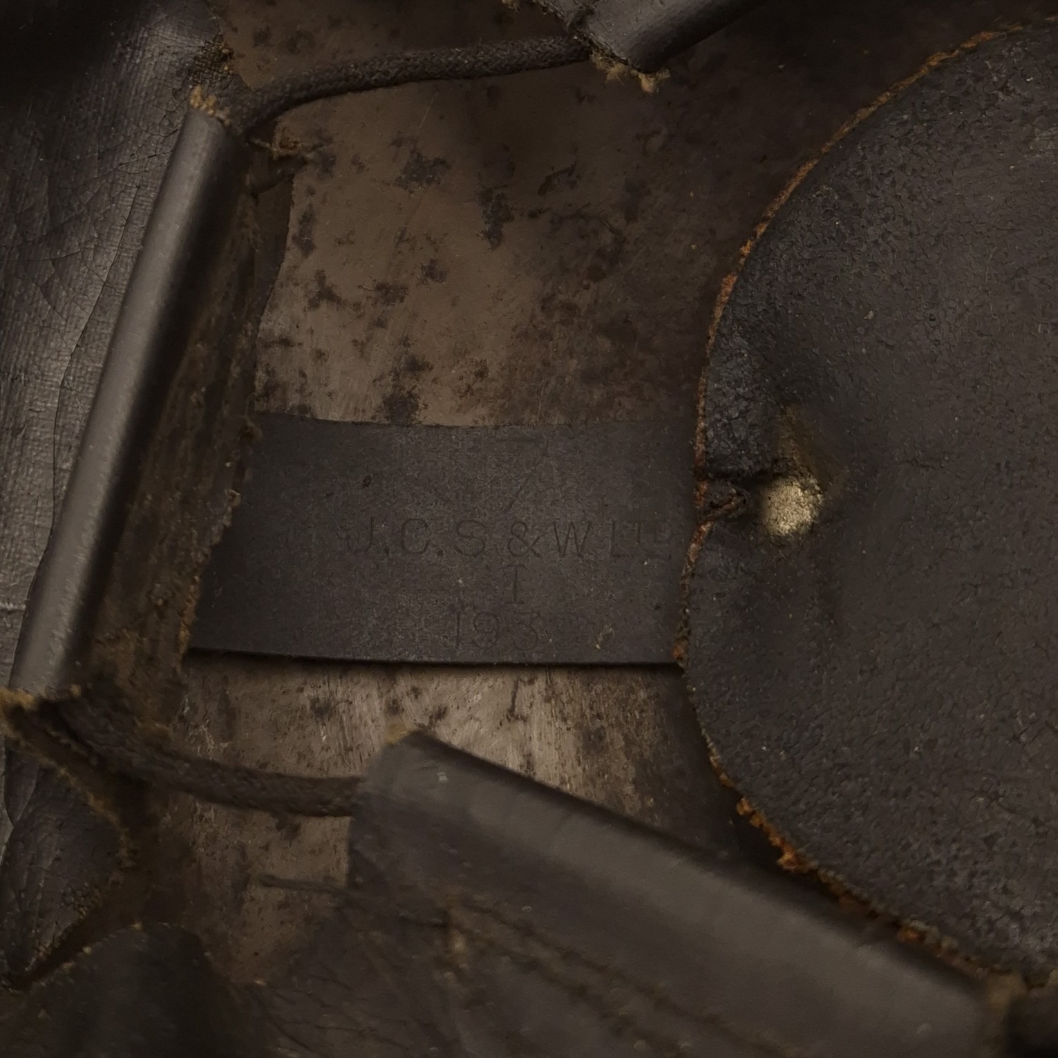 Original WWII British ‘Gloucestershire Regiment’ MkII helmet. The helmet shell is maker-marked F&L and dated 1940. The liner is by J.C.S. & W. Ltd, size 7, dated 1939. An original Gloucestershire Regiment decal remains to the side, still in good condition. The helmet shows honest service wear , a nice “been there” example.