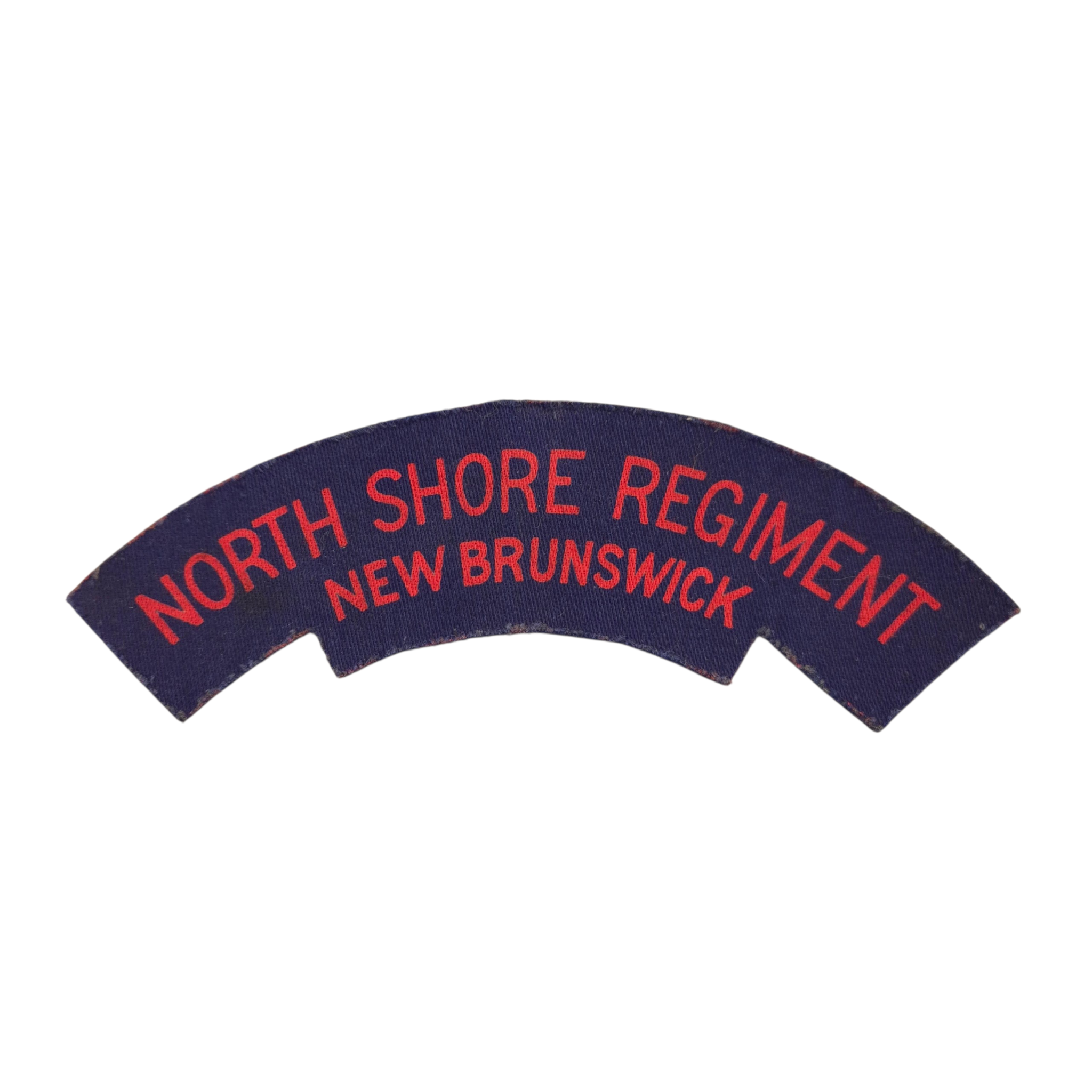 Original WWII North Shore Regiment shoulder title. English-made printed shoulder title for Canadian troops serving overseas. The title is in very good condition.