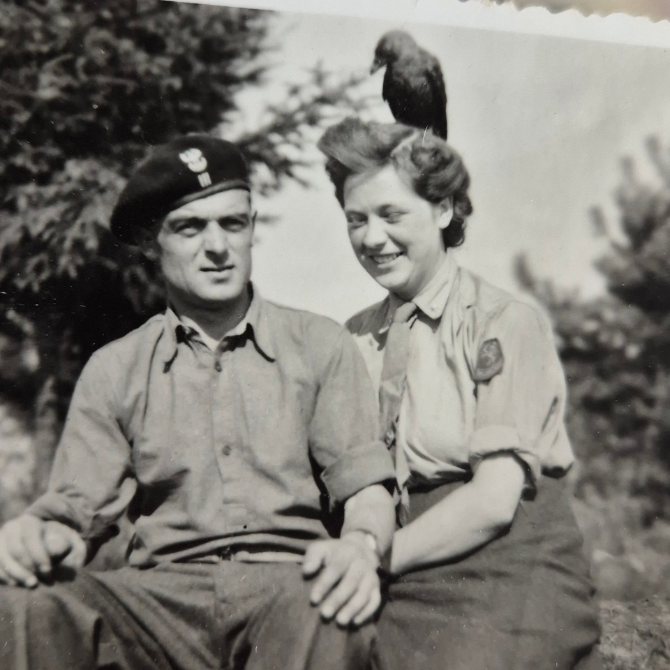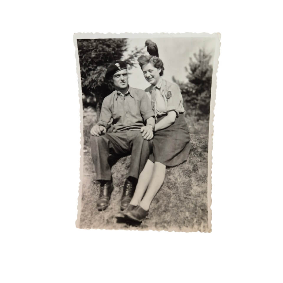Original WWII Polish Armoured Division picture showing a Polish trooper with a Dutch lady. Size: 7 x 10 cm