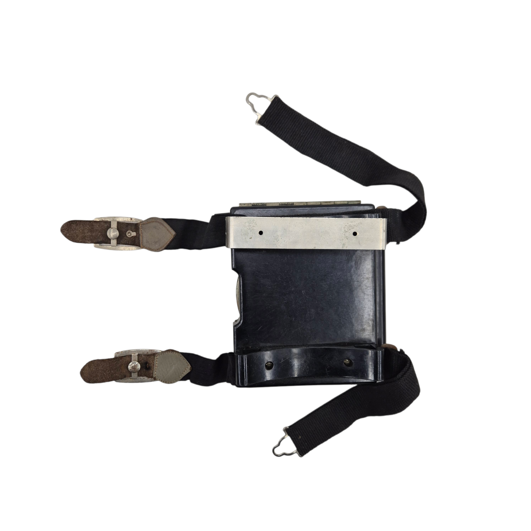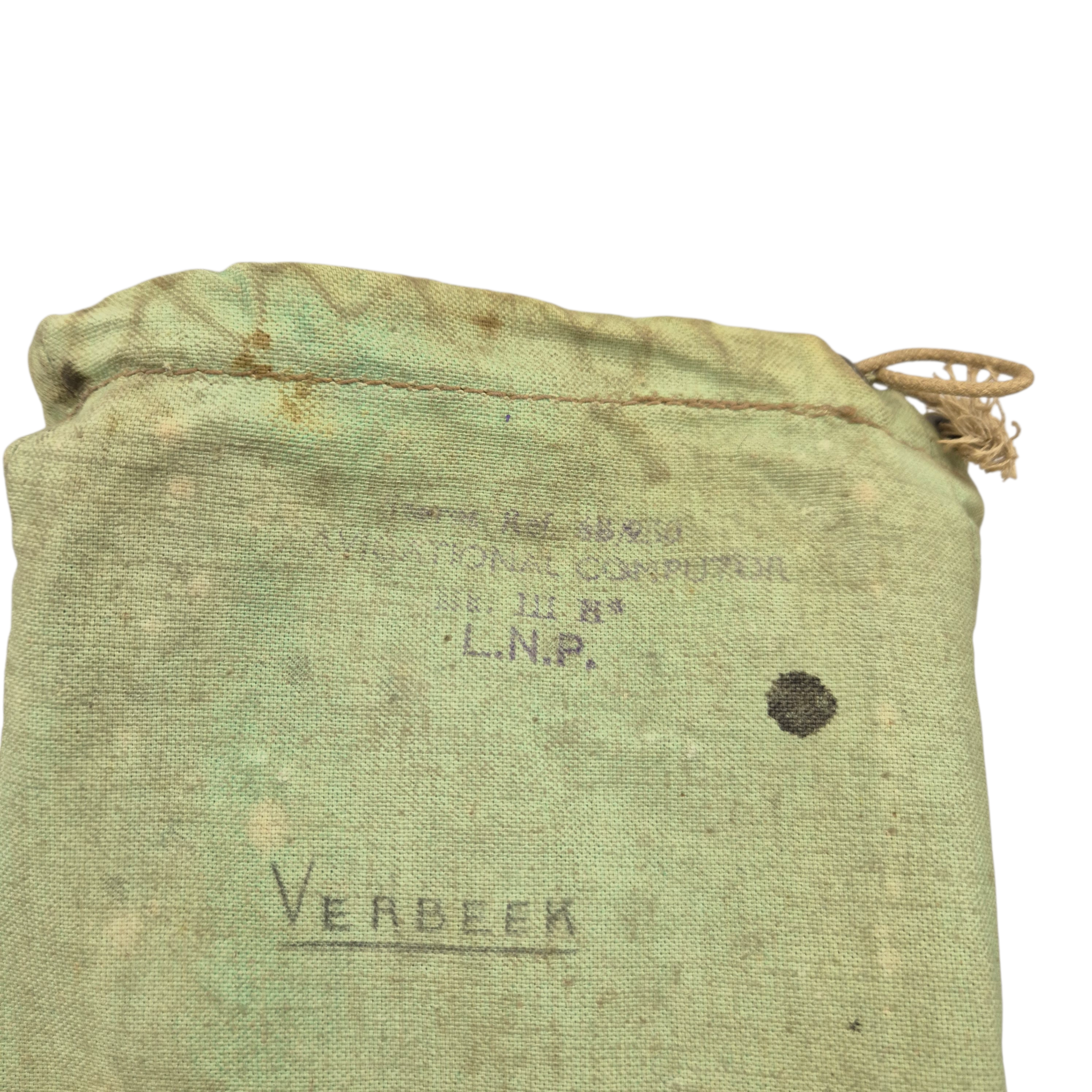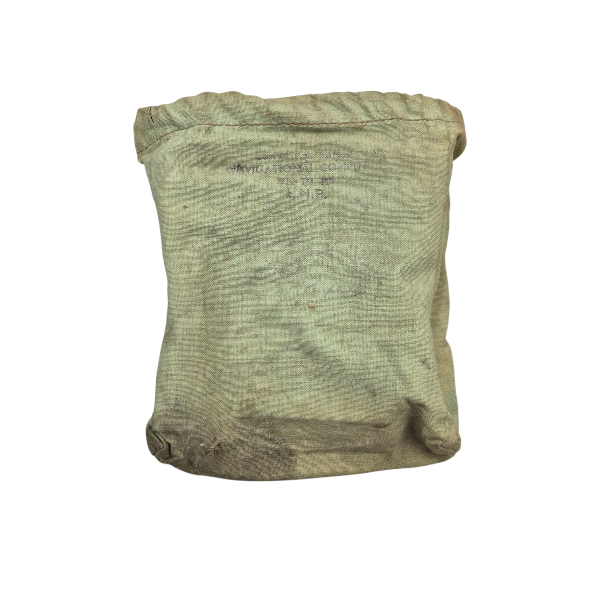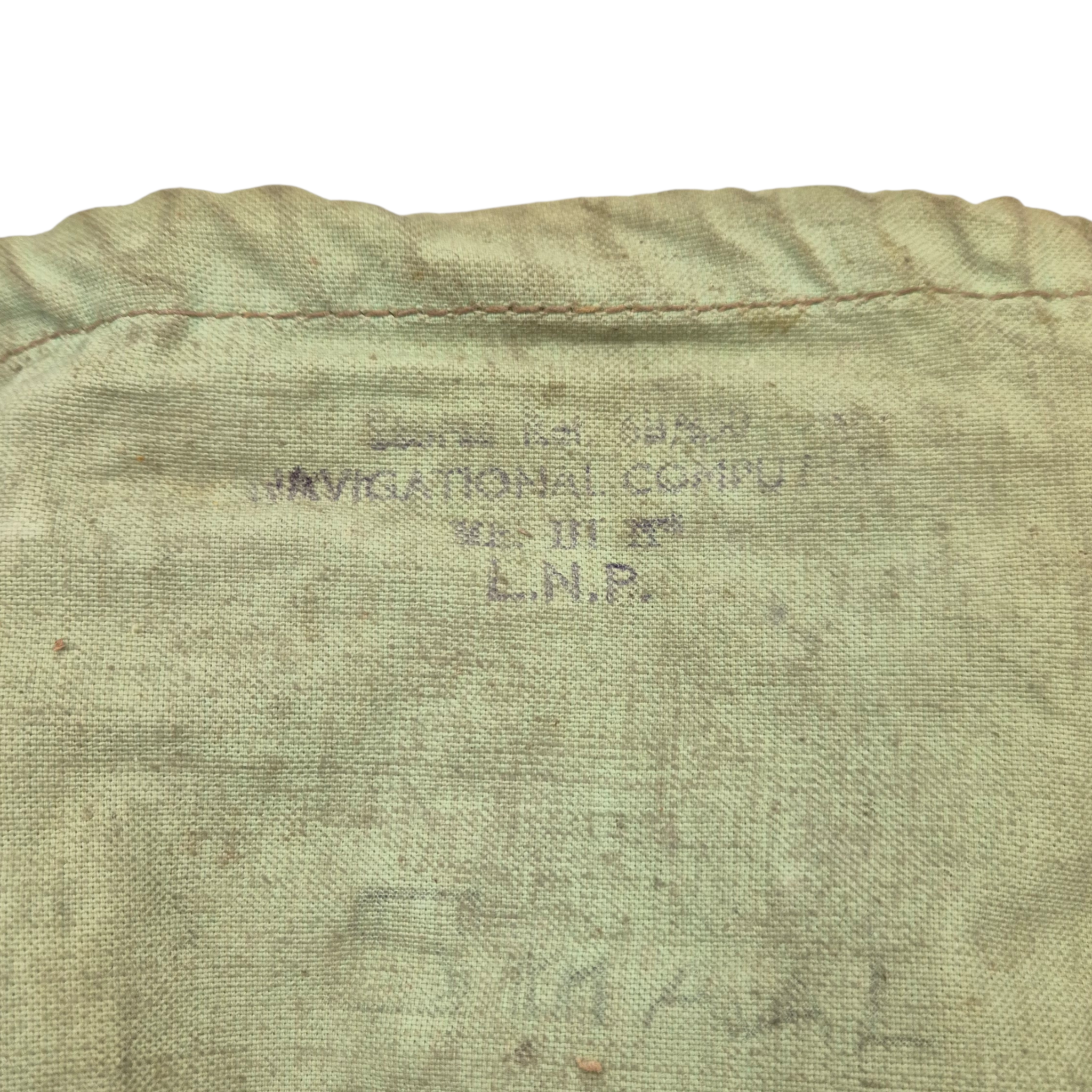 Original WWII RAF Navigation Computer Mk IIID, complete with its original storage bag. The computer retains the adjustable straps for attachment to the upper leg and is Air Ministry marked. It is additionally marked “KM”, indicating use by the Dutch Koninklijke Marine. The storage bag is also stamped and bears two period names. The original notebook remains present. A well-preserved and complete set.