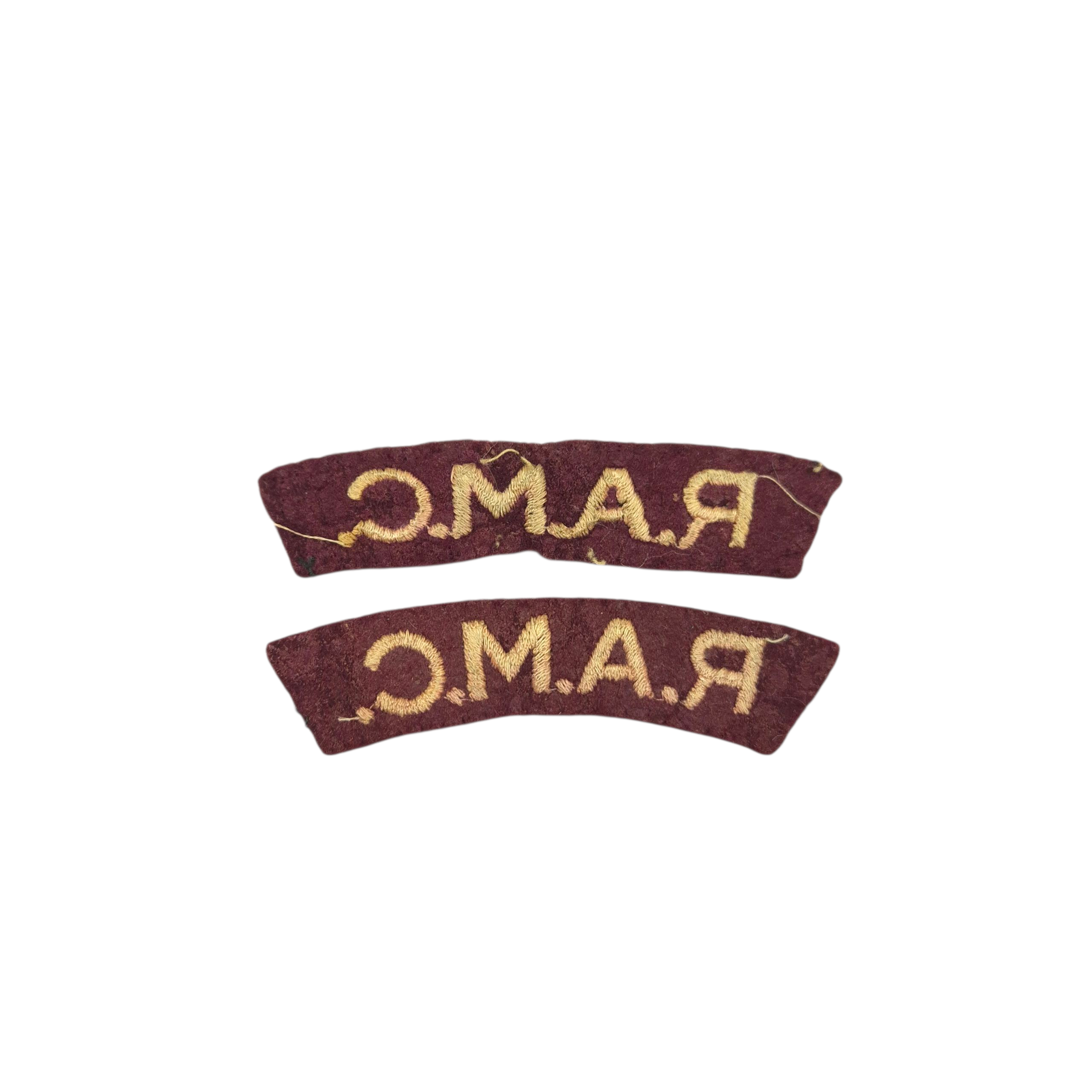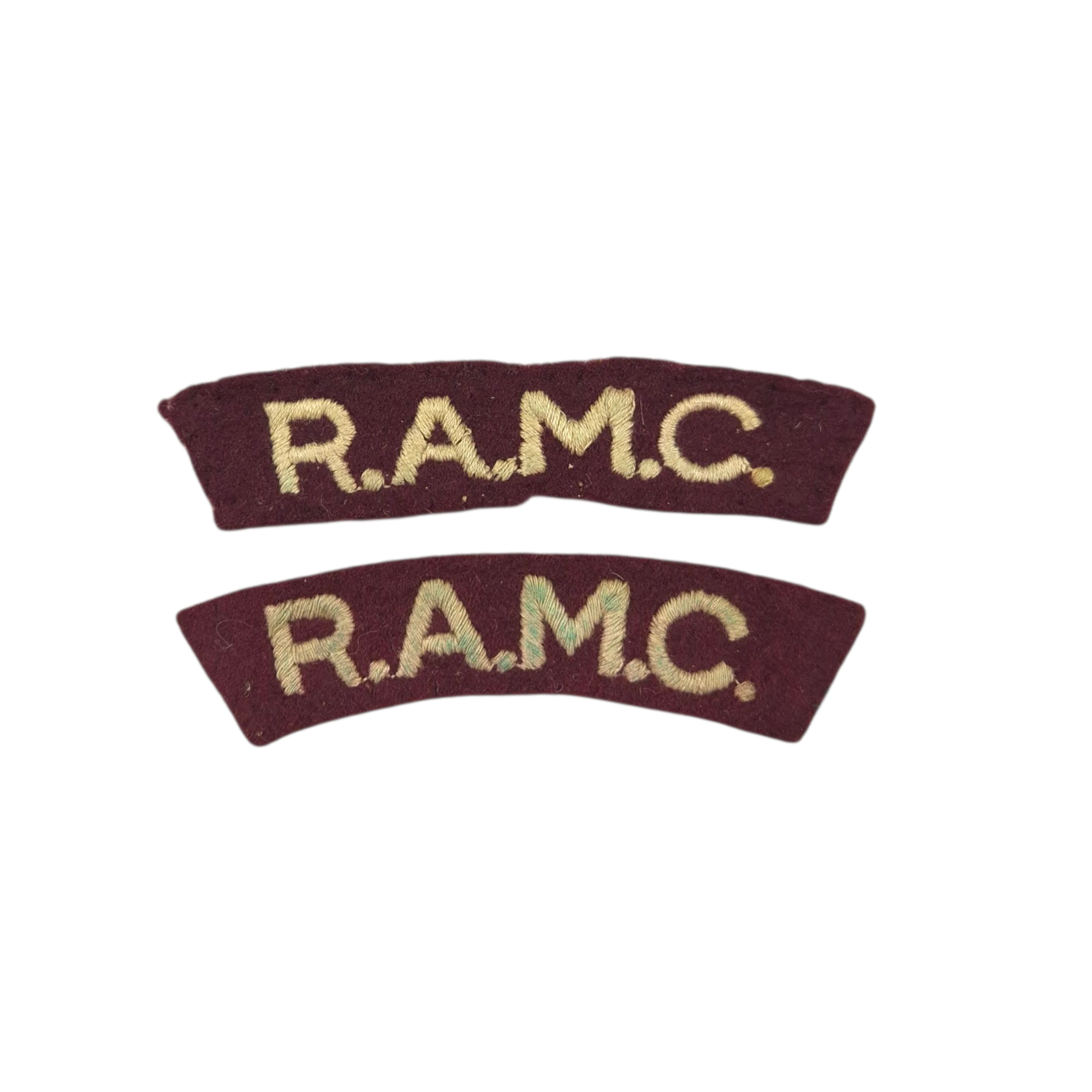 Original WWII pair of embroidered Royal Army Medical Corps (RAMC) shoulder titles. In uniform removed condition.