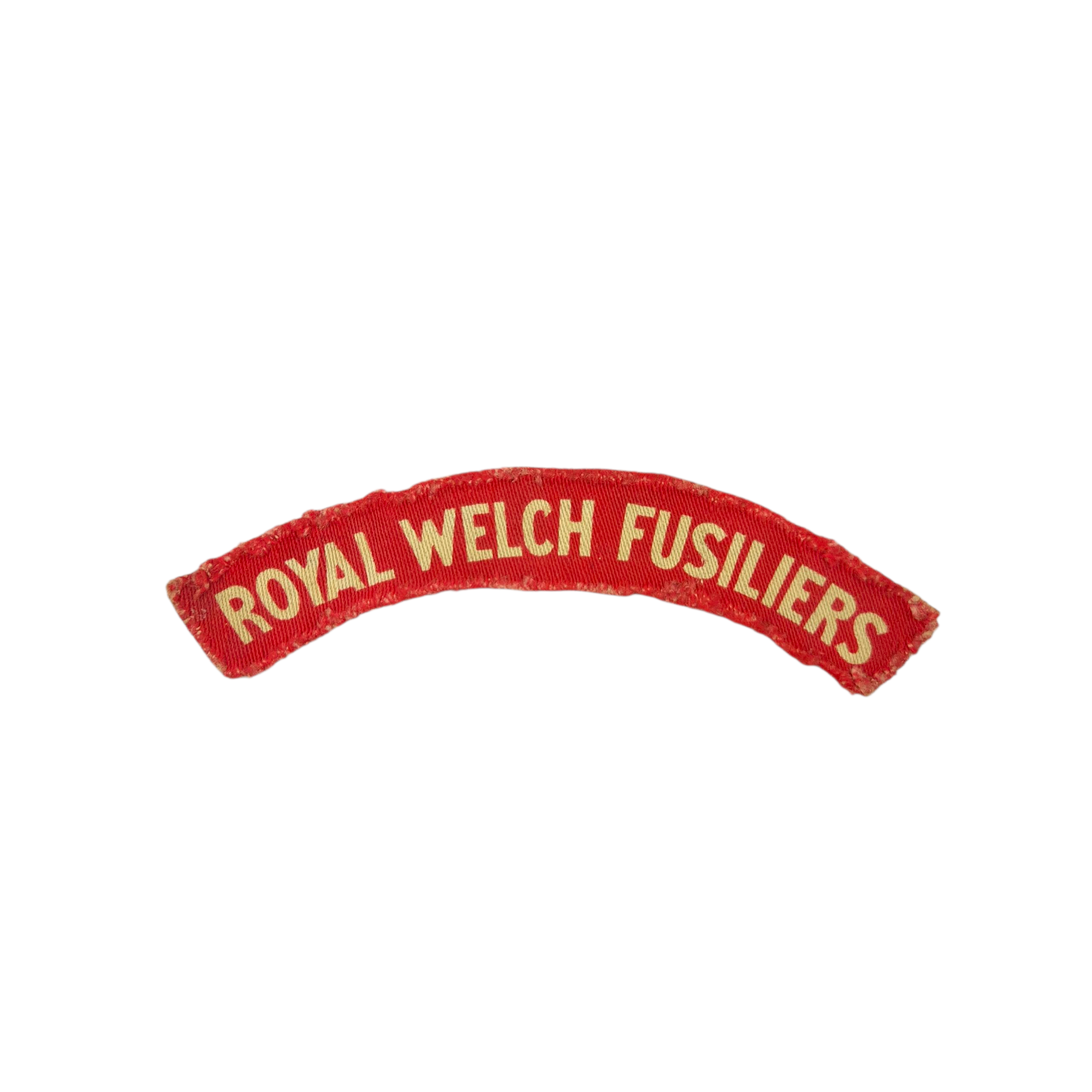 Original WWII Royal Welsh Fusiliers printed shoulder title. Good condition, uniform removed.