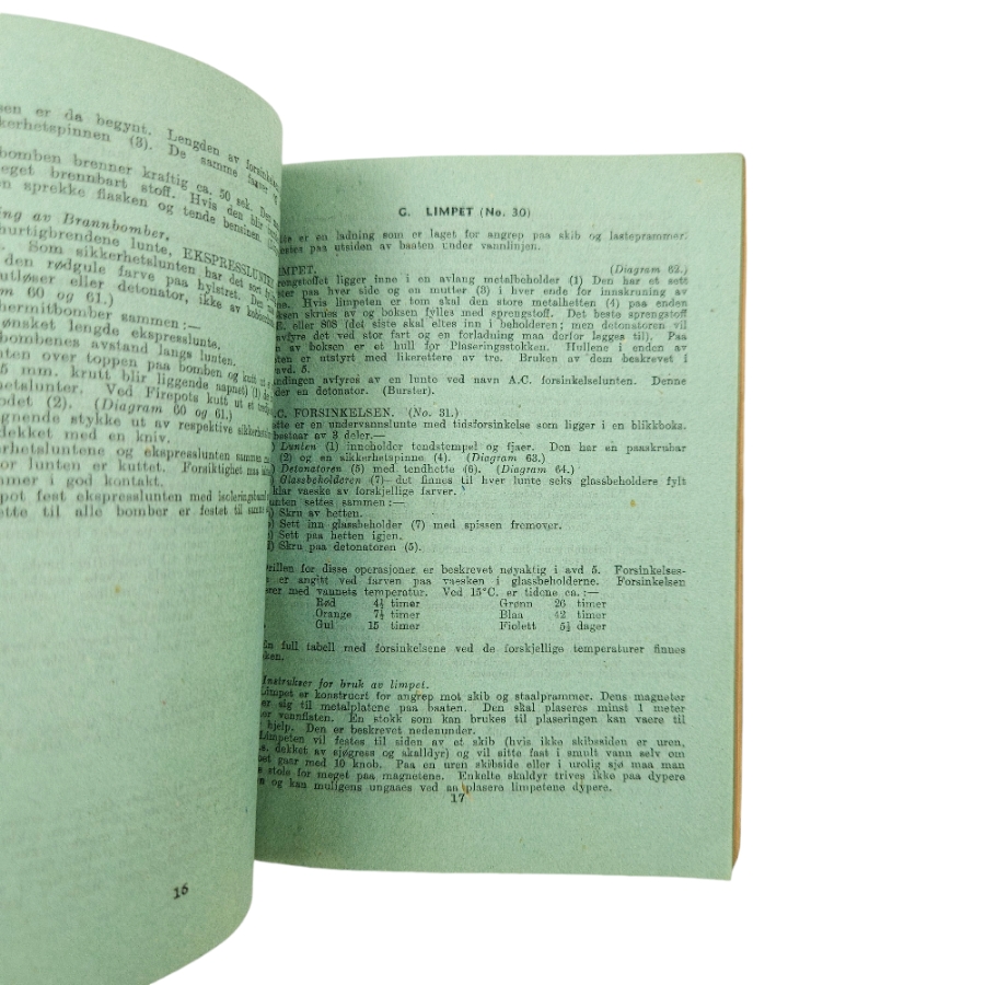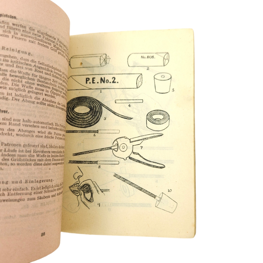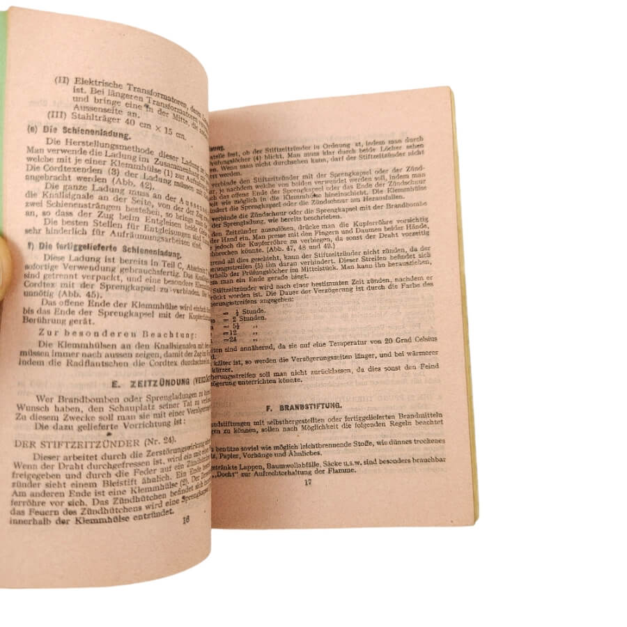 Rare original WWII SOE sabotage instruction booklet. These booklets were included in the supply drops, packed within the containers. The booklet provides instructions on weapons and ammunition, presented in seven different languages.